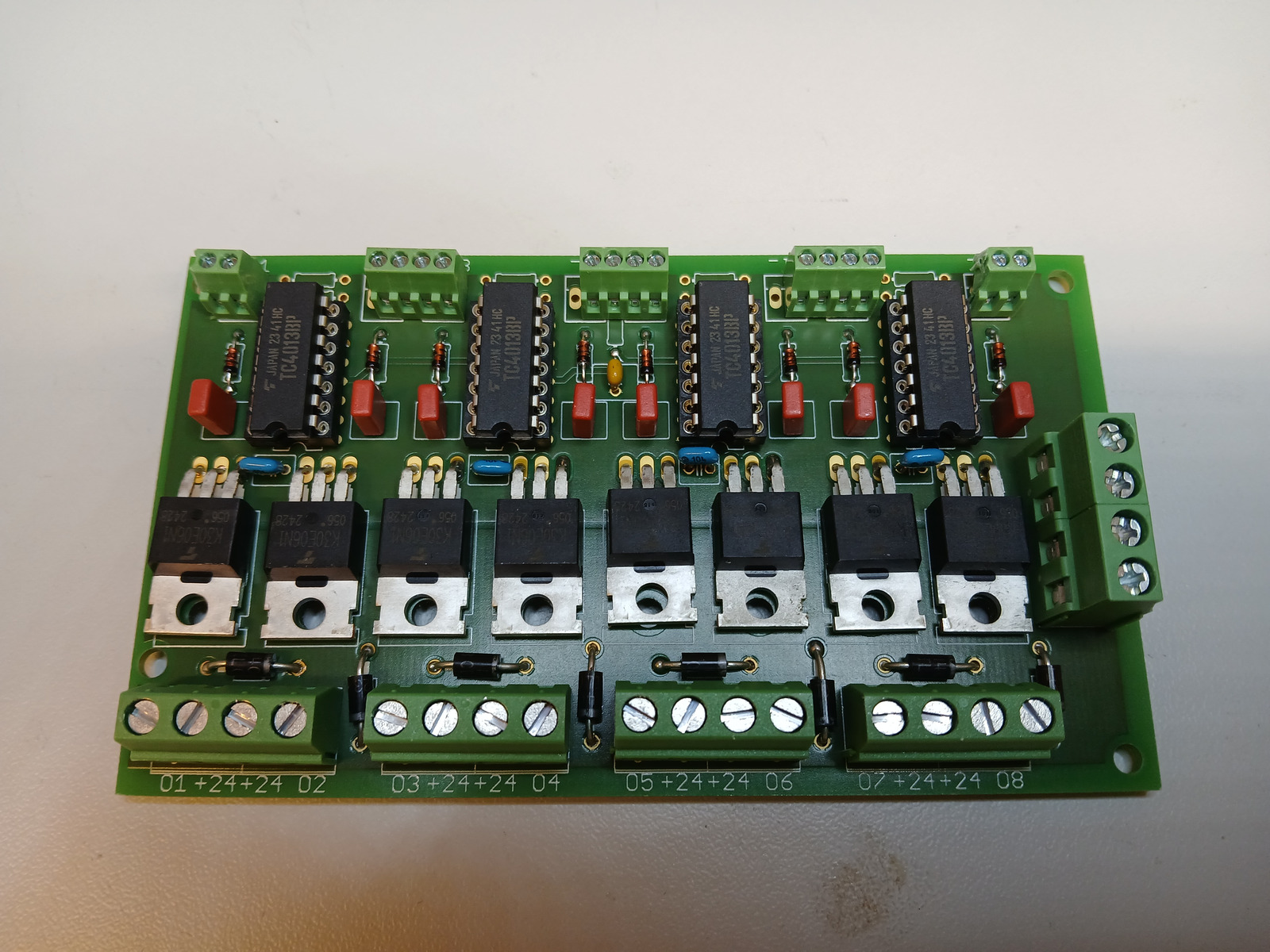 Um das Licht zu schalten, habe ich eine 8-fach Toggleschaltung aus Bauteilen des letzten Jahrtausends gebaut, keine messbare Stromaufnahme.