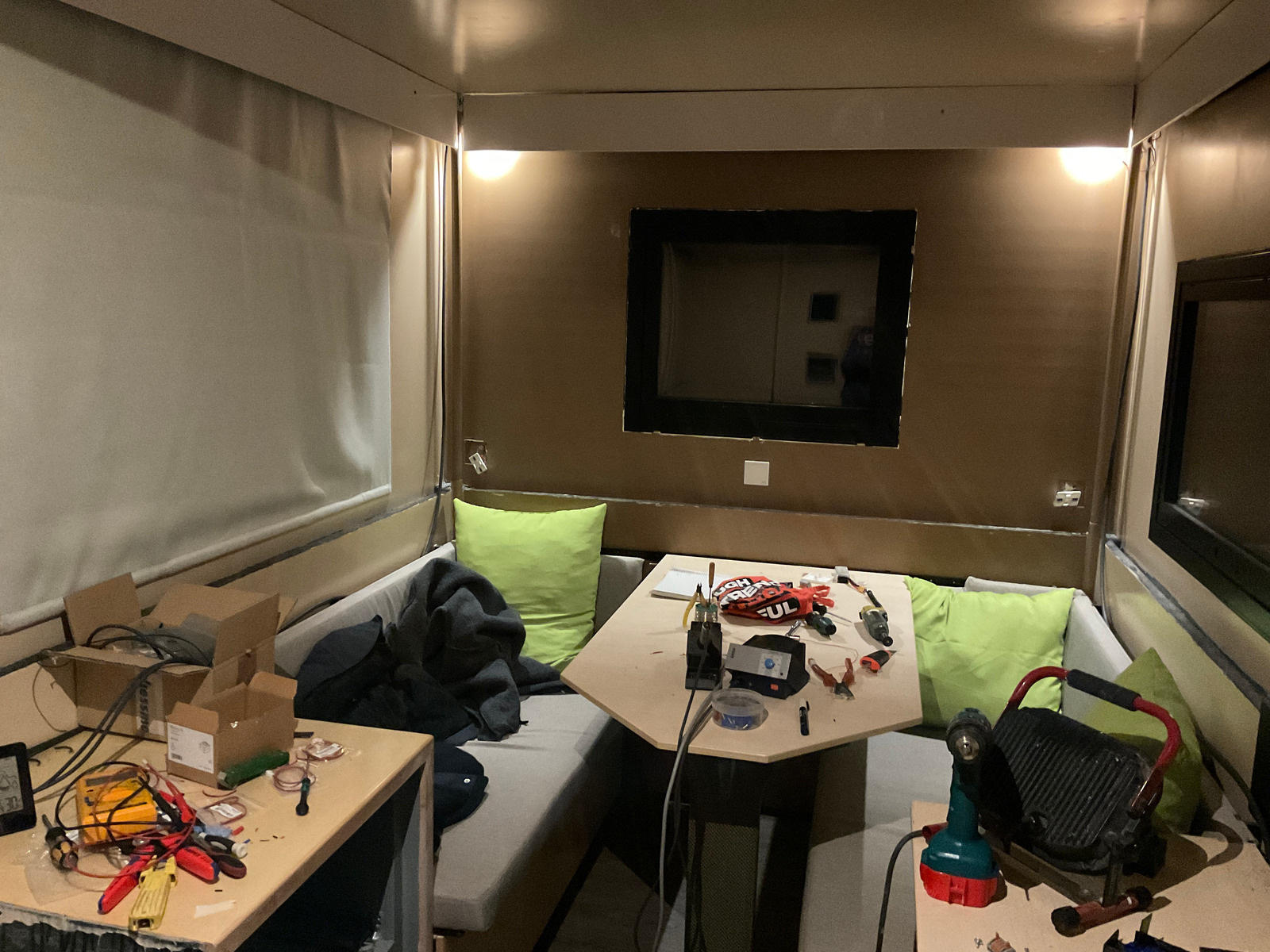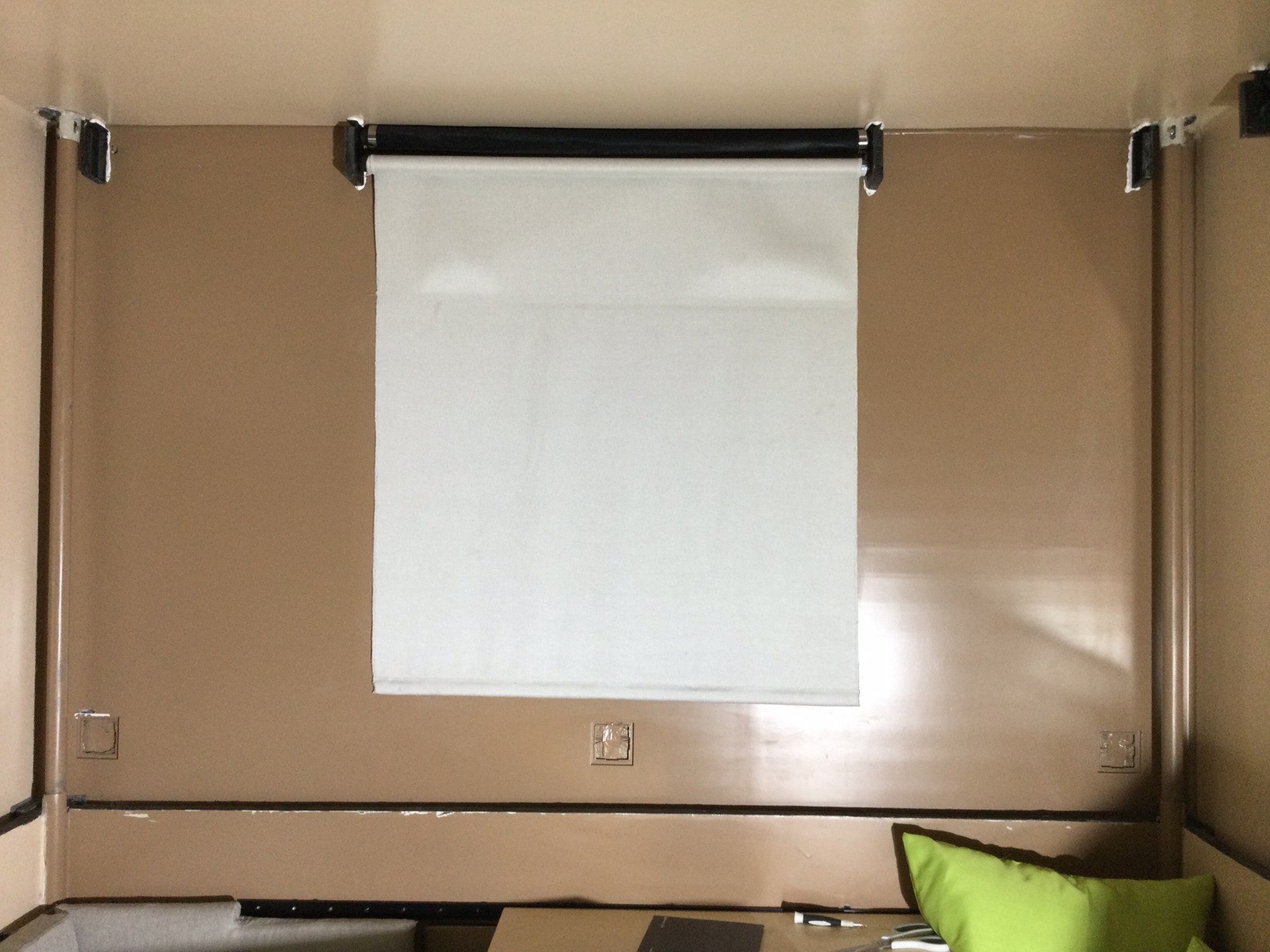 Nach 6 Wochen Pause habe ich mich wieder dem Ausbau beschäftigt. Die Rollos sind besfestigt und meine Sorge mit der Befestigung des Stoffs an dem Wickelrohr war unbegründet. Jetzt kann ich verdunkeln und die Mücken aussperren.