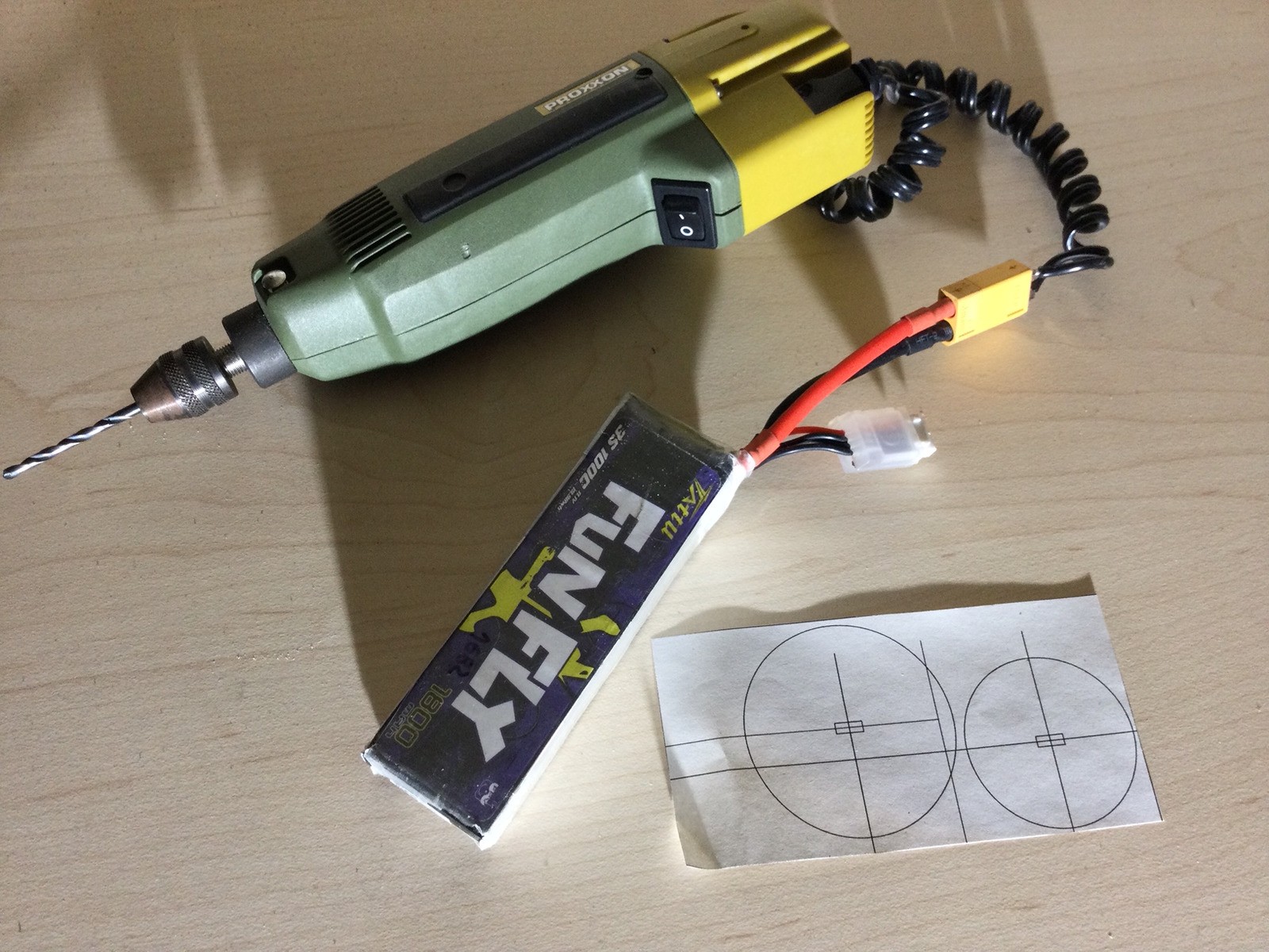 Die Löcher für die Rollowellen habe ich mit einer Schablone in die angeklebten Halter gebohrt. Der Akkuschrauber war zu breit, also musste ein Dremel herhalten.