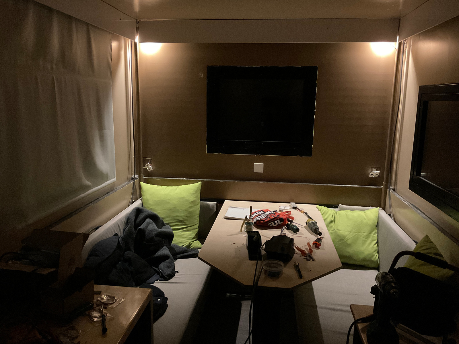 Zusammen ist es schon so hell, dass ich den Baustellenscheinwerfer rausschmeissen werde.