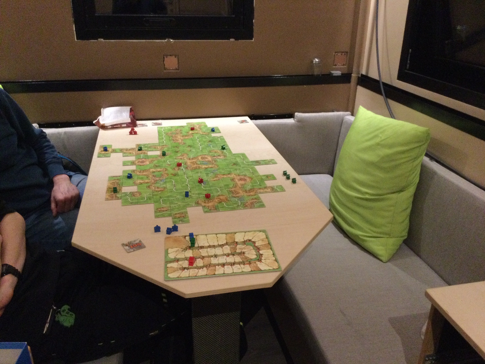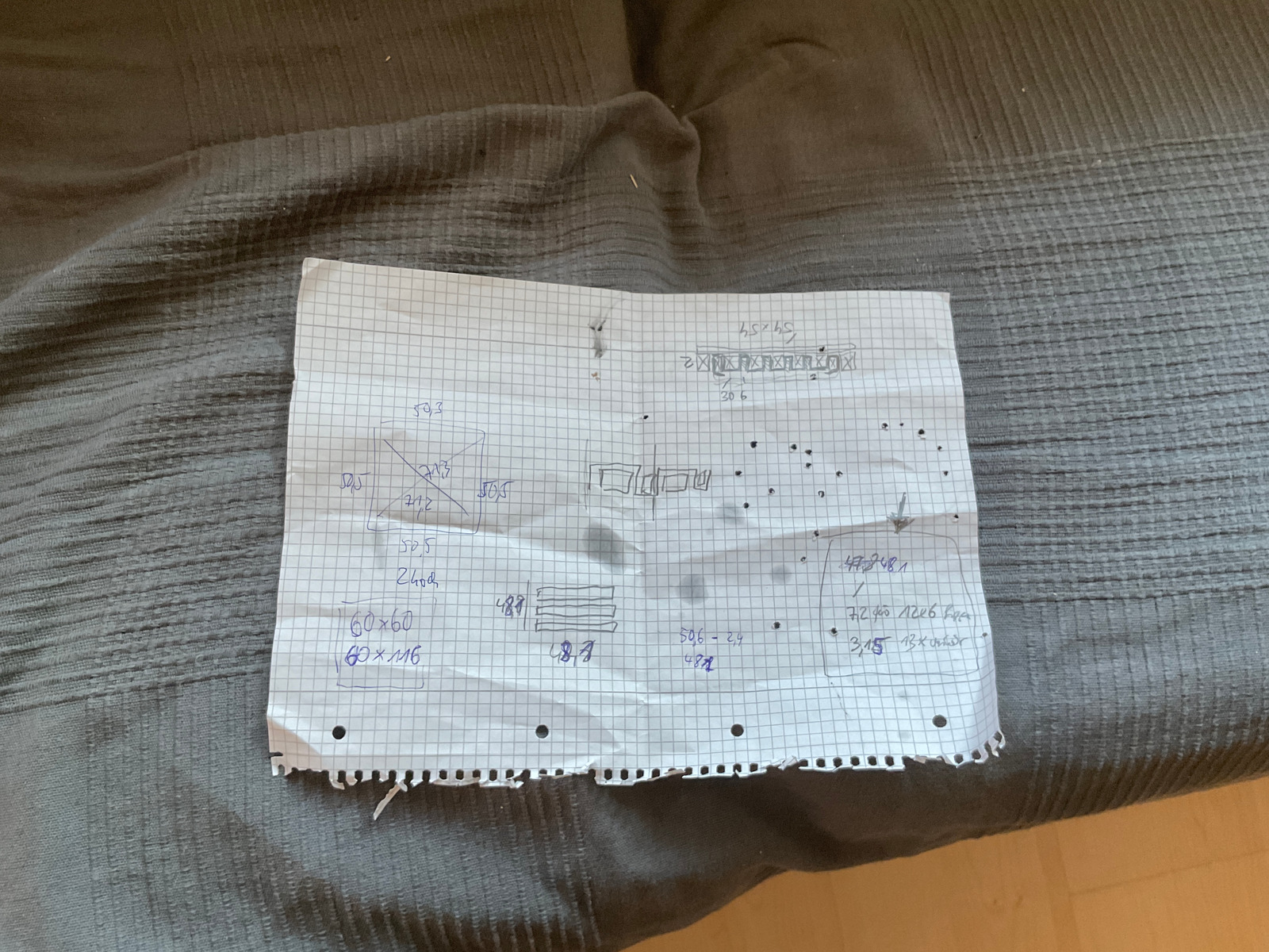 Ganz fertig ist das Bett noch nicht, weil das Kurbelgetriebe zu schwergängig ist und keine Selbsthemmung hat. Das muss ich nochmal tauschen gegen eine Version mit höherer Übersetzung. Daher kann ich den Zustand Bett oben nicht fotografieren, weil ich die provisorische Kurbel festhalten musste. Der Bettbezug und die Kissen müssen noch farblich angepasst werden. Mal sehen, wie ich heute Nacht auf einer alten Federkernmatzratze schlafe, ich habe mich schon an die bequeme Wohnmobilmatratze gewöhnt. Vielleicht schlafe ich morgen mal in dem Aufbau.