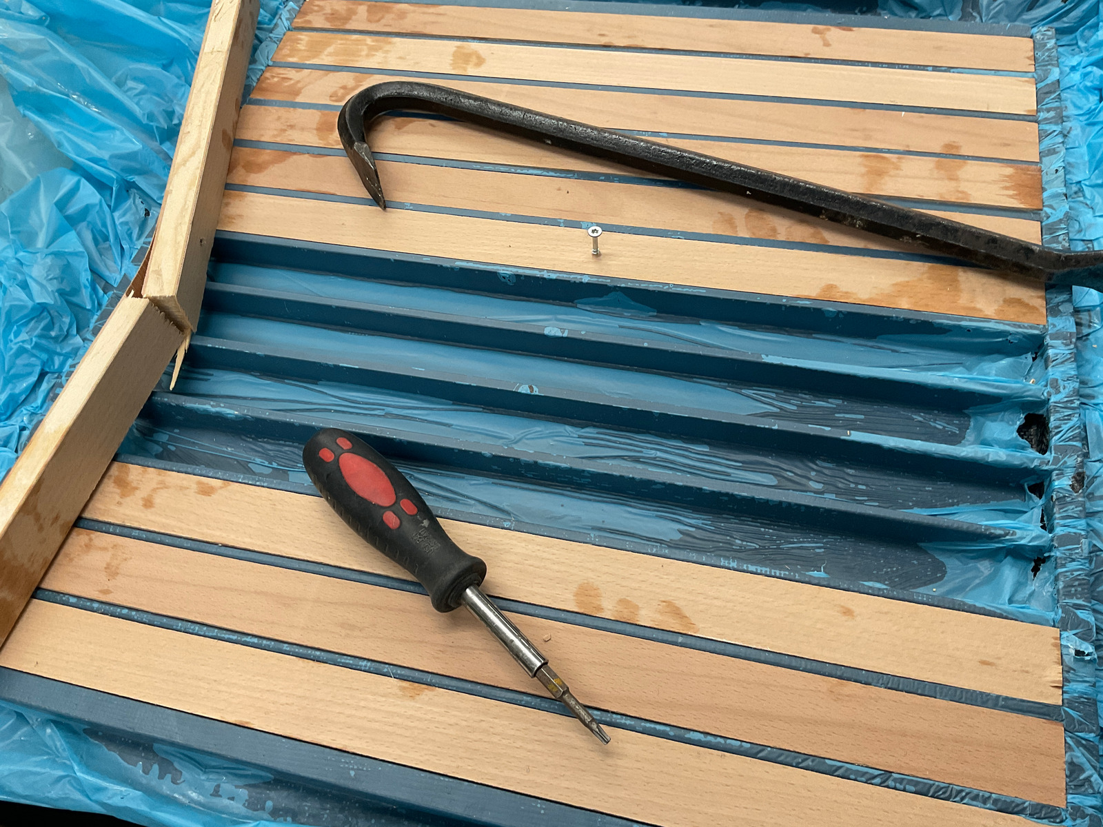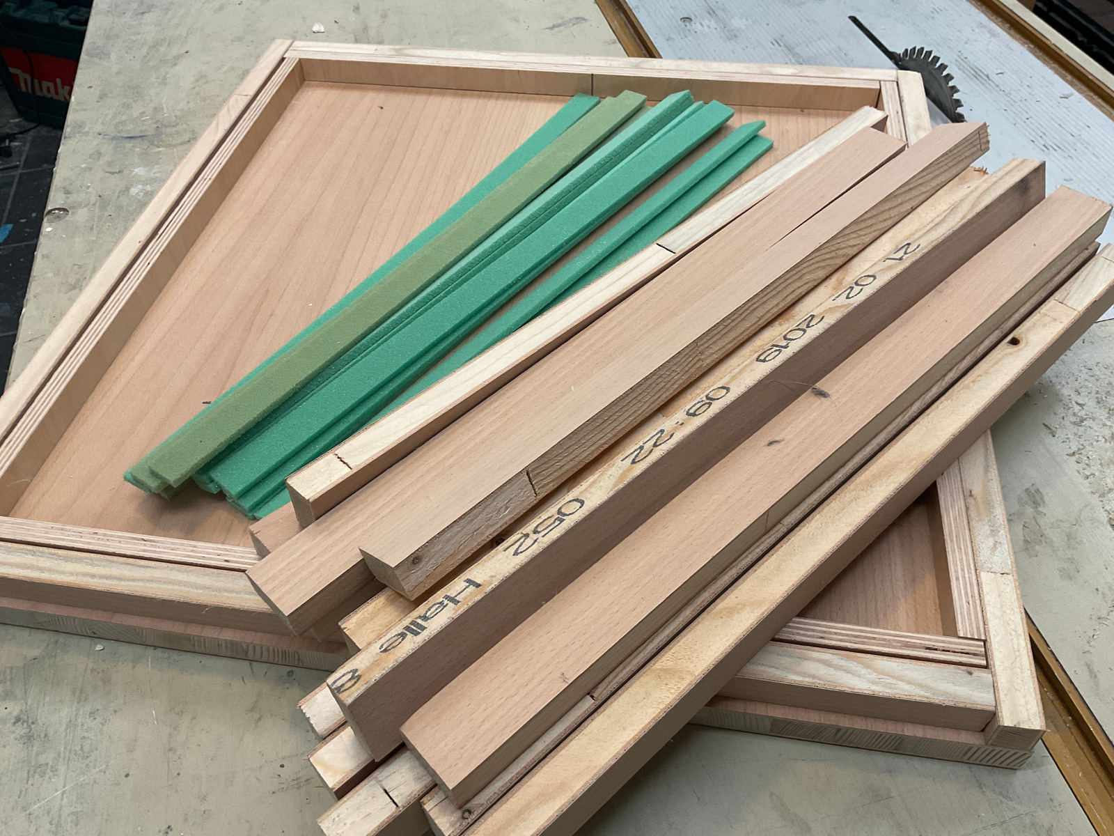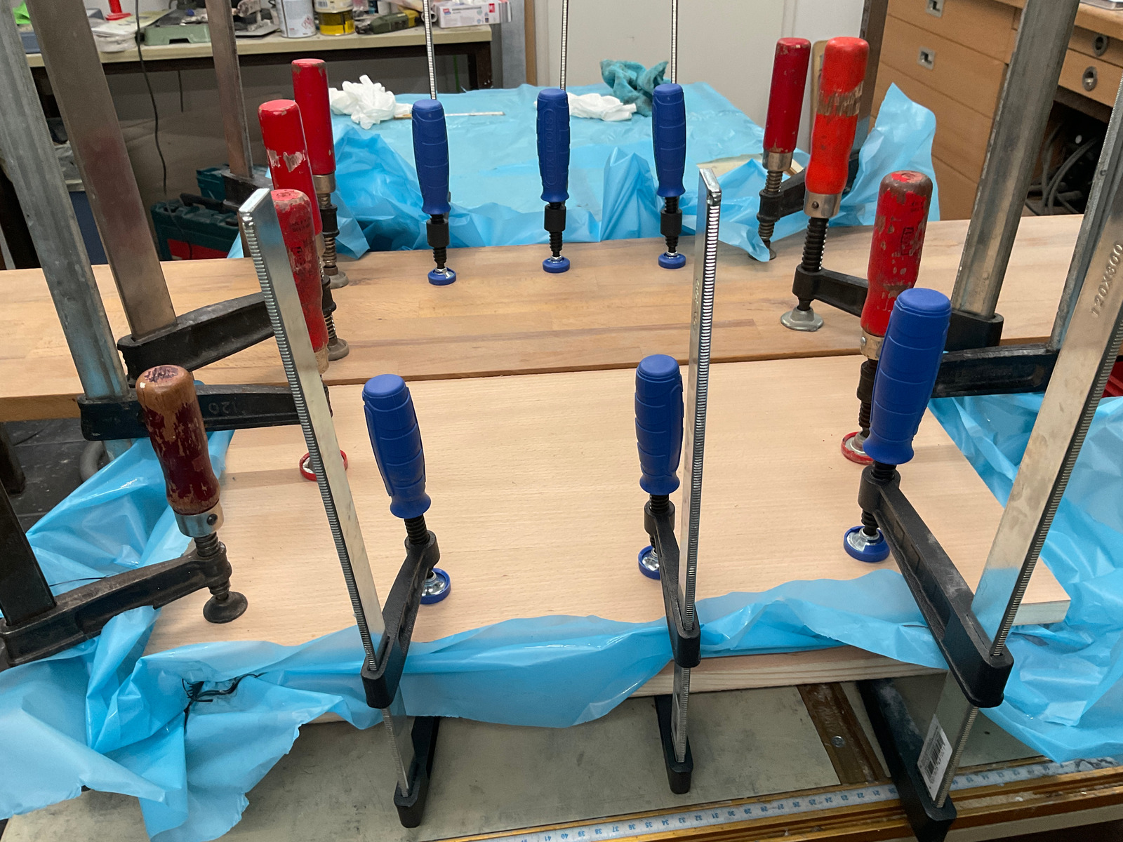 Was gibts noch: ich habe eine Abdeckung für die Elektrotechnik gebaut. Mal schnell gezeichnet, Holz gesägt und laminiert. Die Platzhalter liessen sich nur mit Gewalt entfernen. Die gerippte Struktur von 450 gr ist natürlich begehbar und soll zum Abstellen schmutziger und nasser Schuhe dienen. Durch das mehrdimensionale Pressen ist Trennfolie zwischen Kohlefaserfalten geraten und wird noch rausgepult.