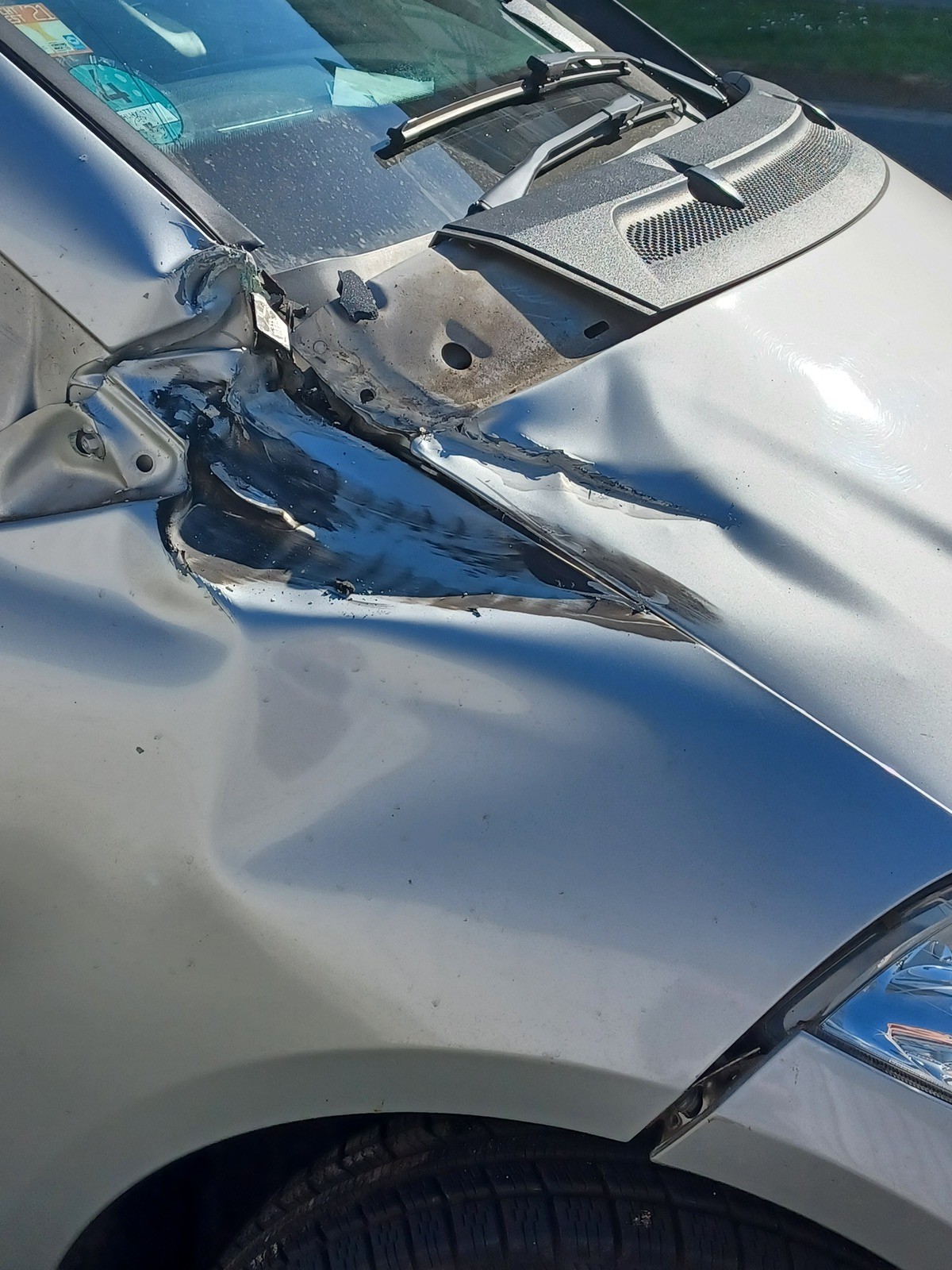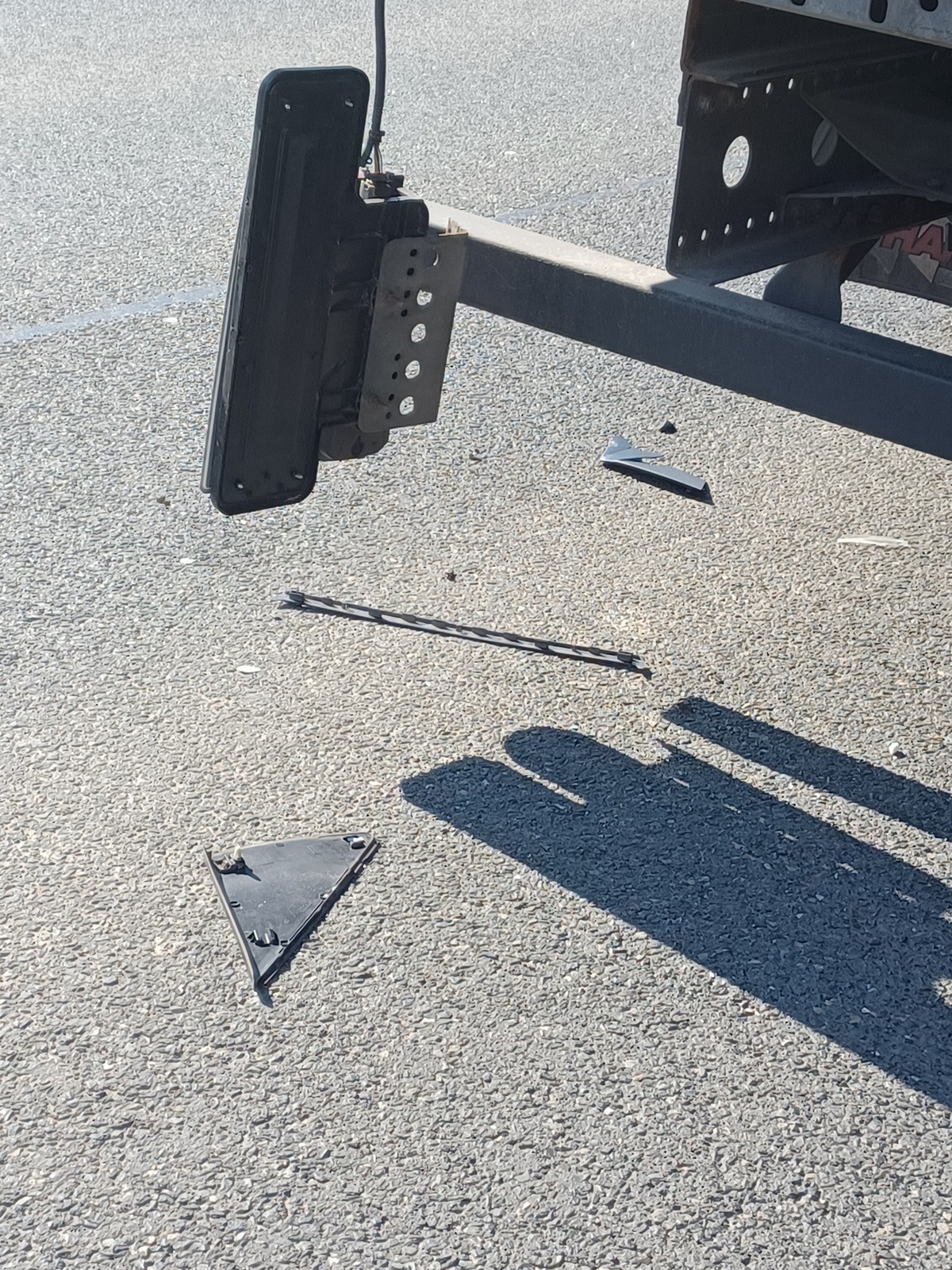 Nachdem die Polizei den Schaden aufgenommen hatte, Leuchtenhalter mit ein paar Kabelbindern befestigt und die Fahrt fortgesetzt.