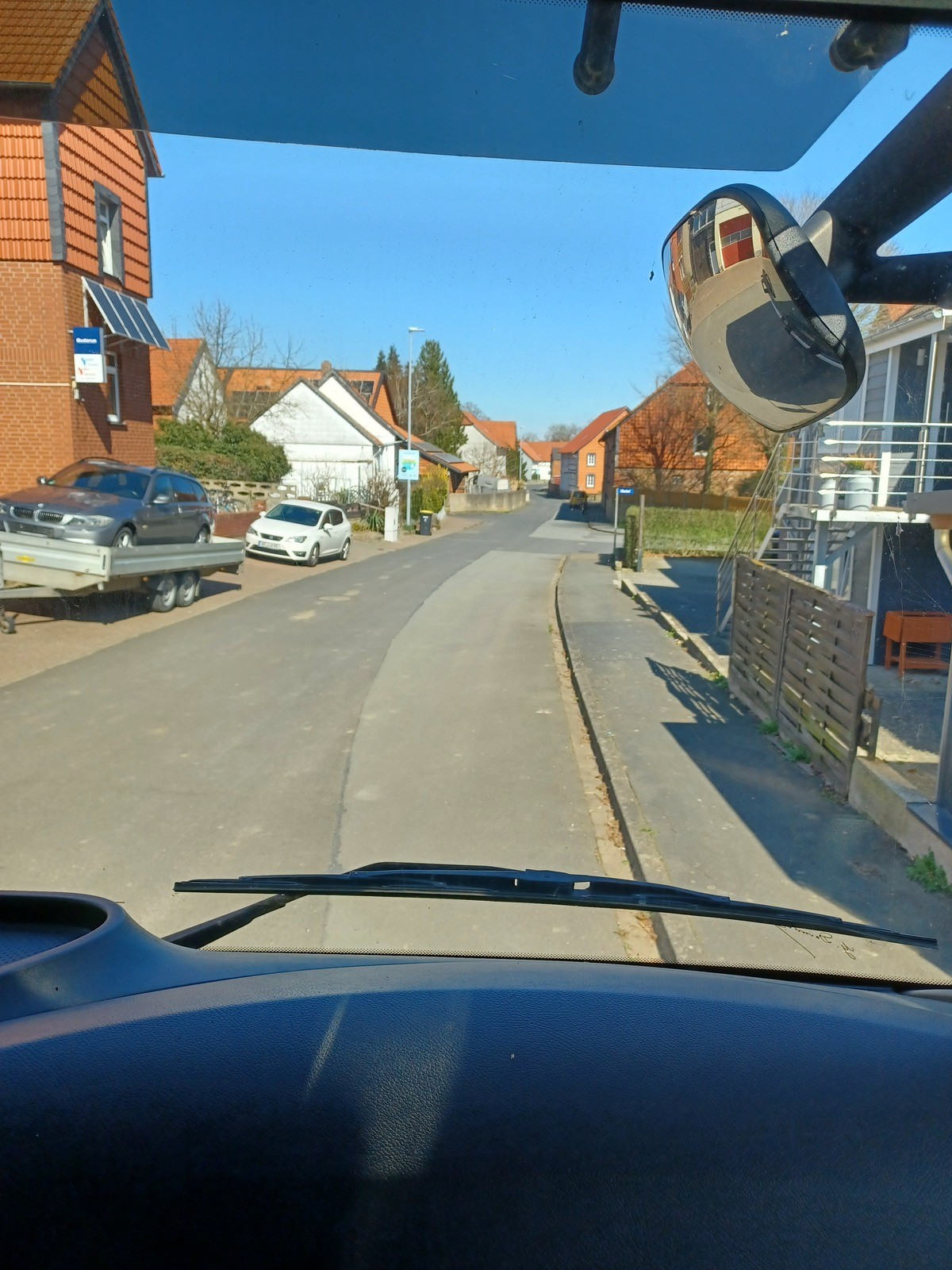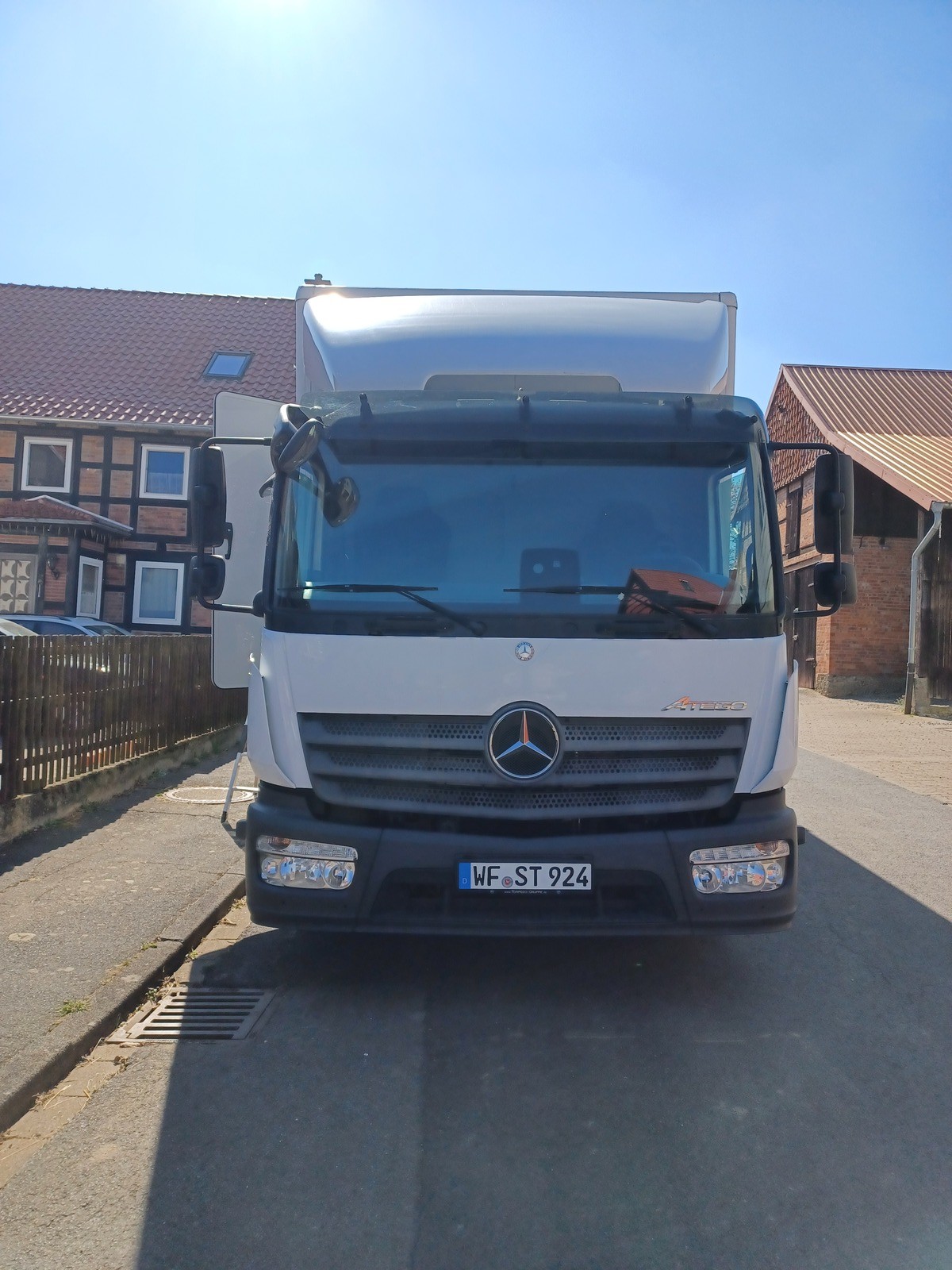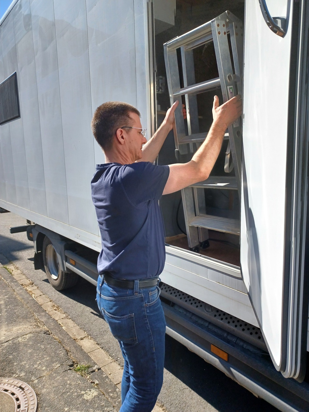 Der Atego ist startklar (bei bestem Wetter), unsere provisorische Leiter rein und los: