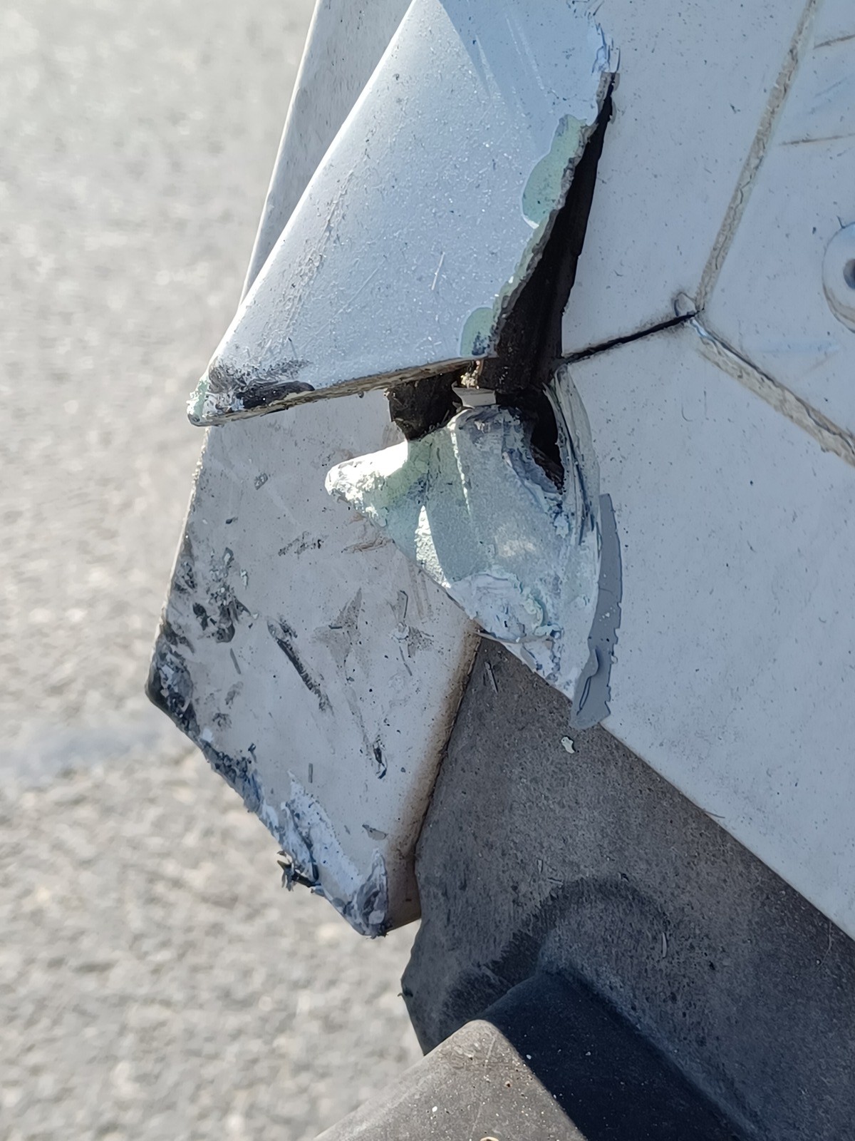 Nachdem die Polizei den Schaden aufgenommen hatte, Leuchtenhalter mit ein paar Kabelbindern befestigt und die Fahrt fortgesetzt.