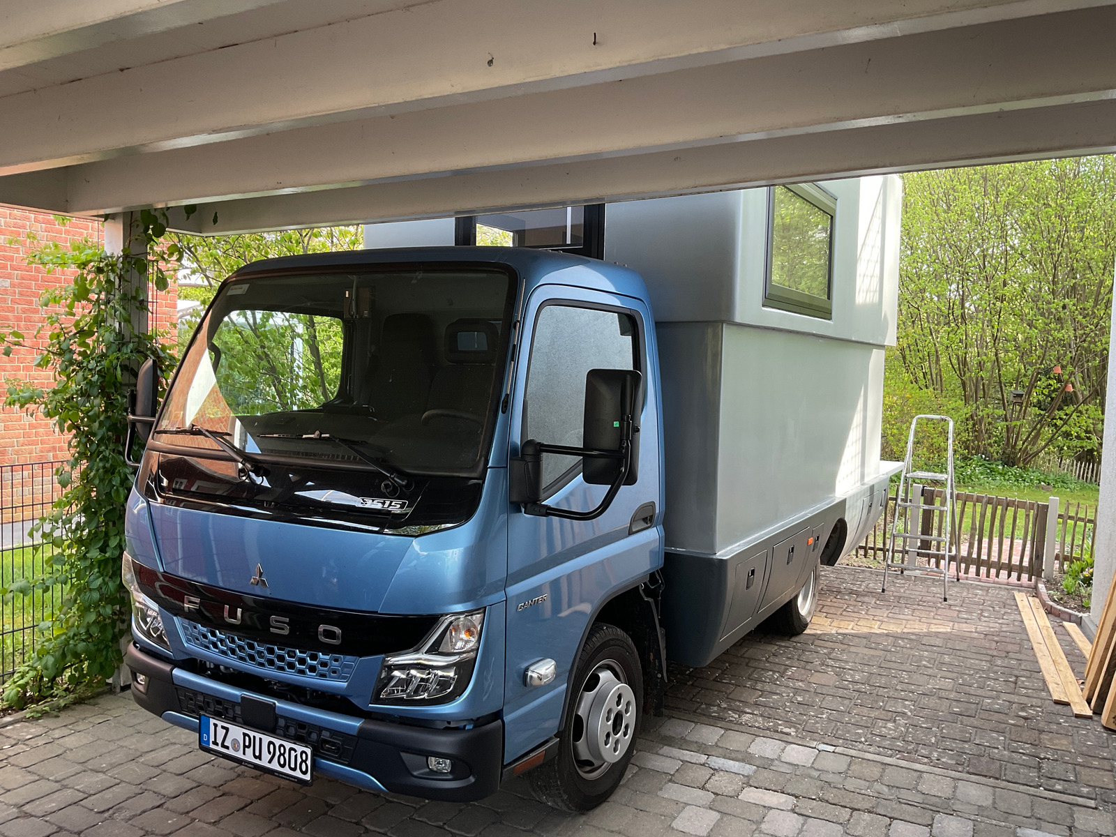 Der Fuso ist von der Halle nach Hause umgezogen, zum ersten mal auf der neuen Auffahrt.
