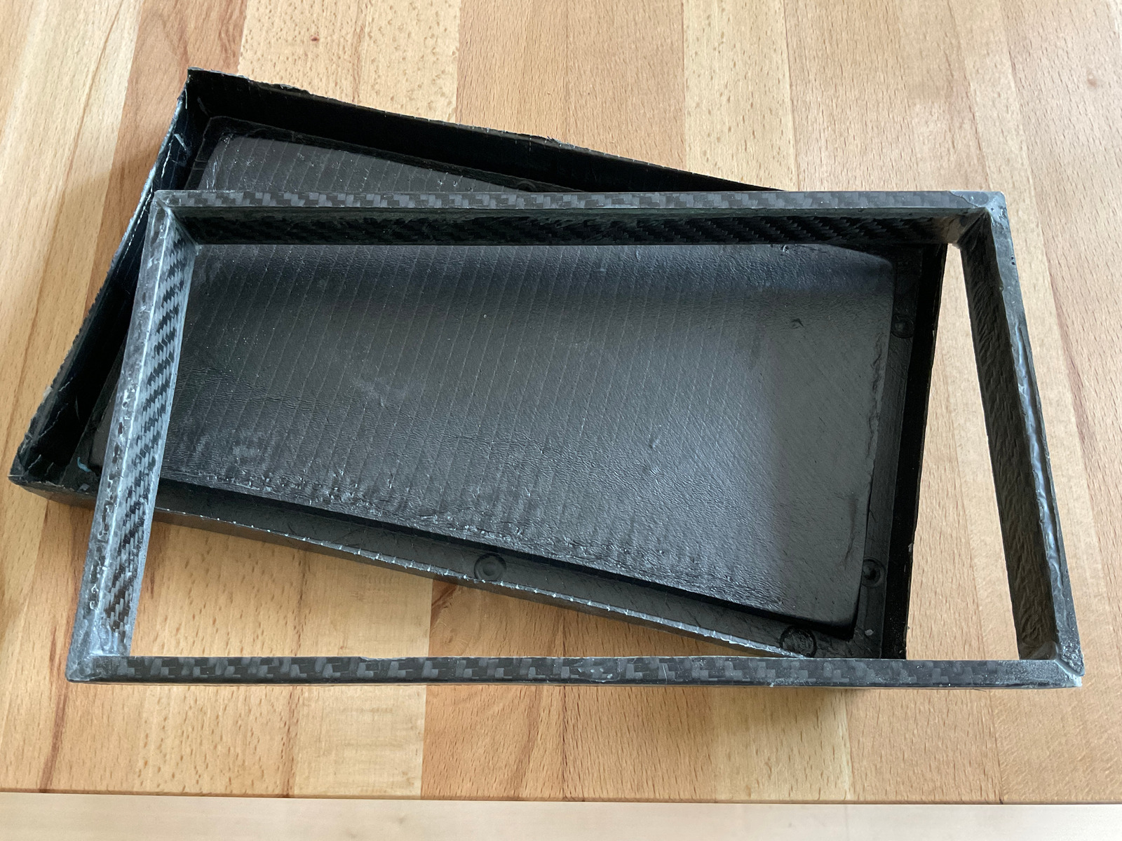 Die Laminiervorführung war wegen des Windes schwierig und das schnelle Harz hat unnötig Stress gemacht. Letztendlich sind die Teile dank vieler helfender Hände doch etwas geworden, nur das Furnier muss erneuert werden.