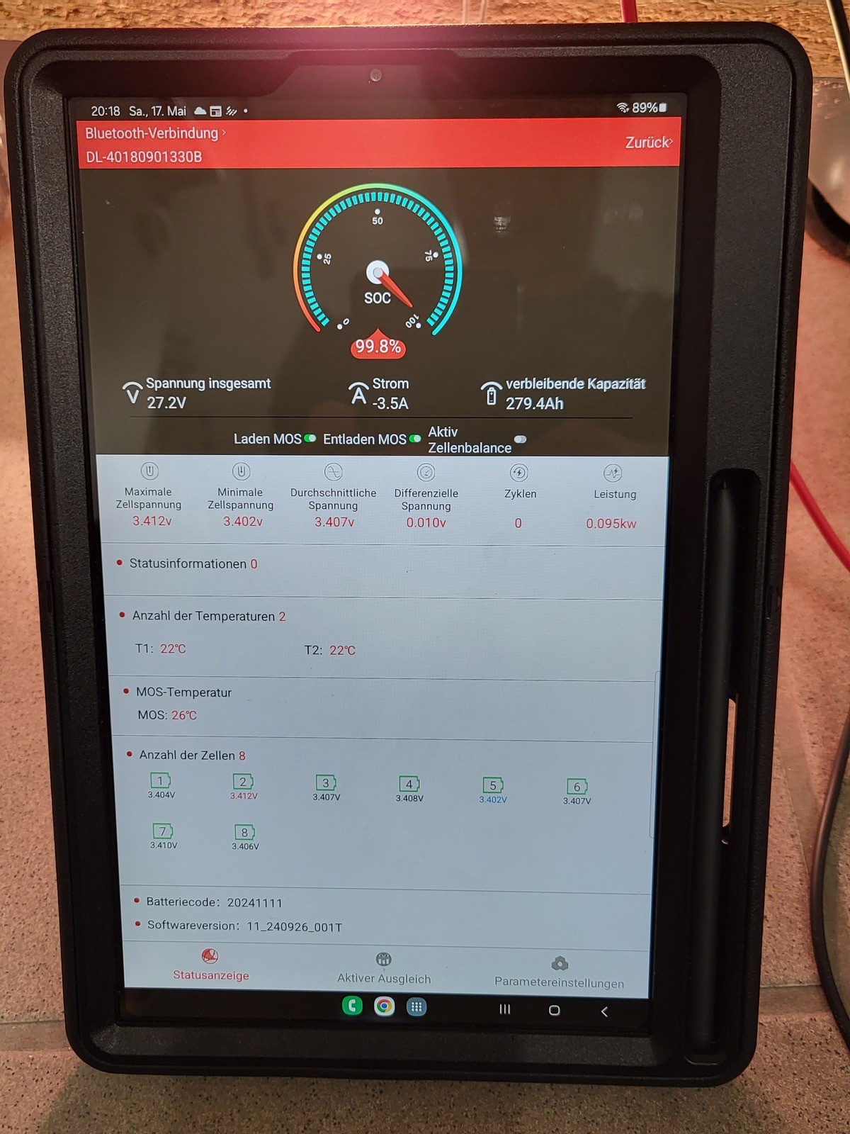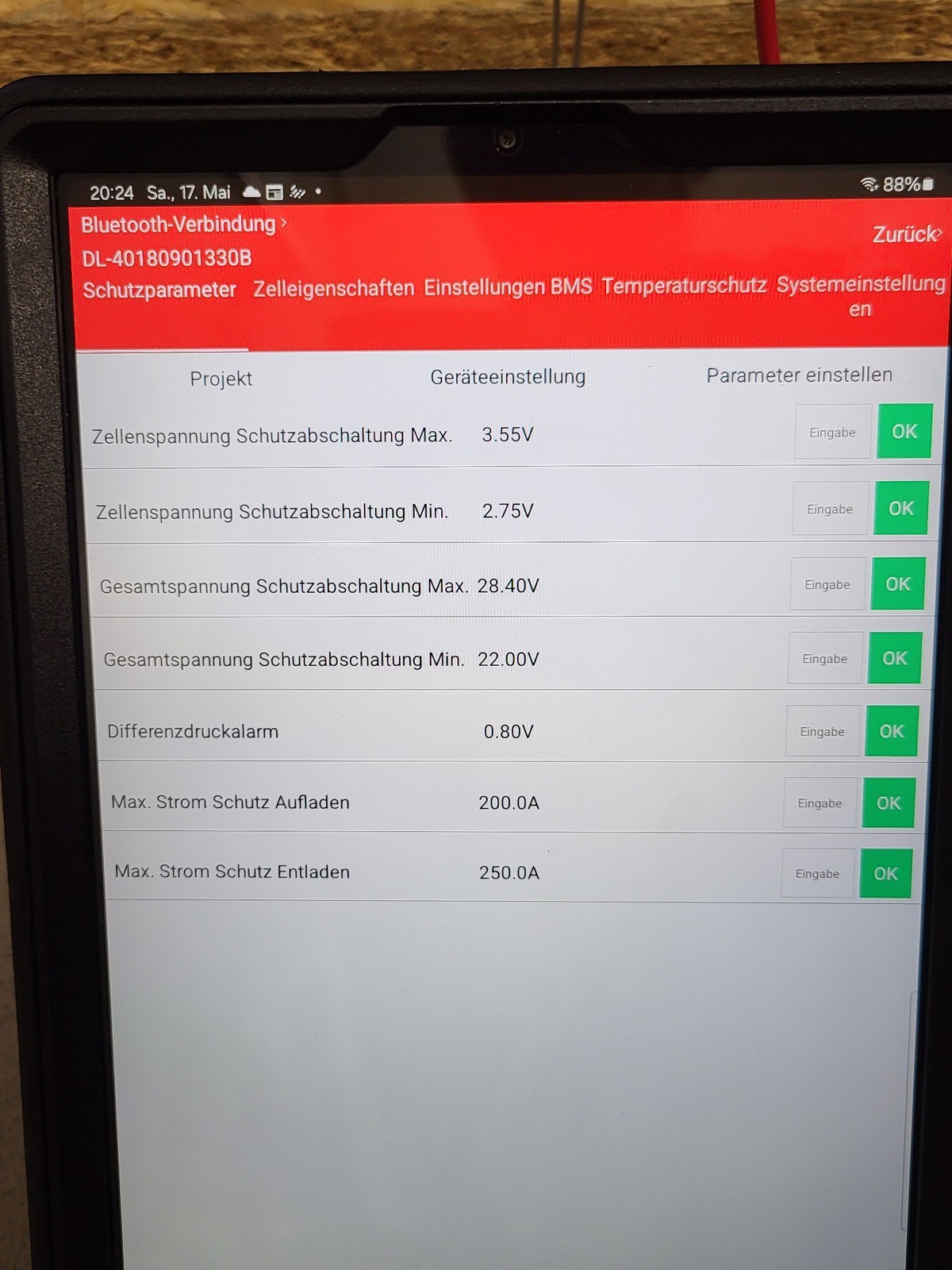 Was ich nicht verstehe, dass das BMS den Ladevorgang bei einer Anzeige von 28,3V beendet, obwohl die Abschaltspannung bei 28,4V eingestellt ist.