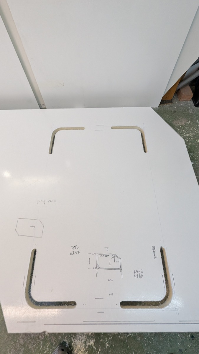 Tür und Türeinlage mit Schablone fräsen Bodenplatte mal auf Anhängerplattform gelegt mit Ausfräsung für Autoterm Eckfräsungen der Türe der Rest wahrscheinlichmit Stich,Kreissäge oder Multitool - macht erheblich weniger Dreck