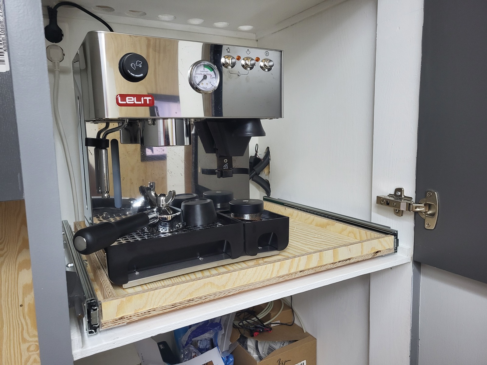 der Auszug für die Kaffeemaschine ist vorbereitet
