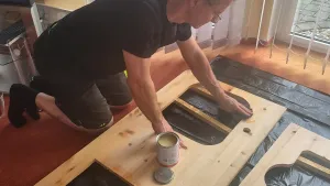 Am "Lagerort" der letzten Monate bekommen die Zirbenholzplatten ihre Ölung...