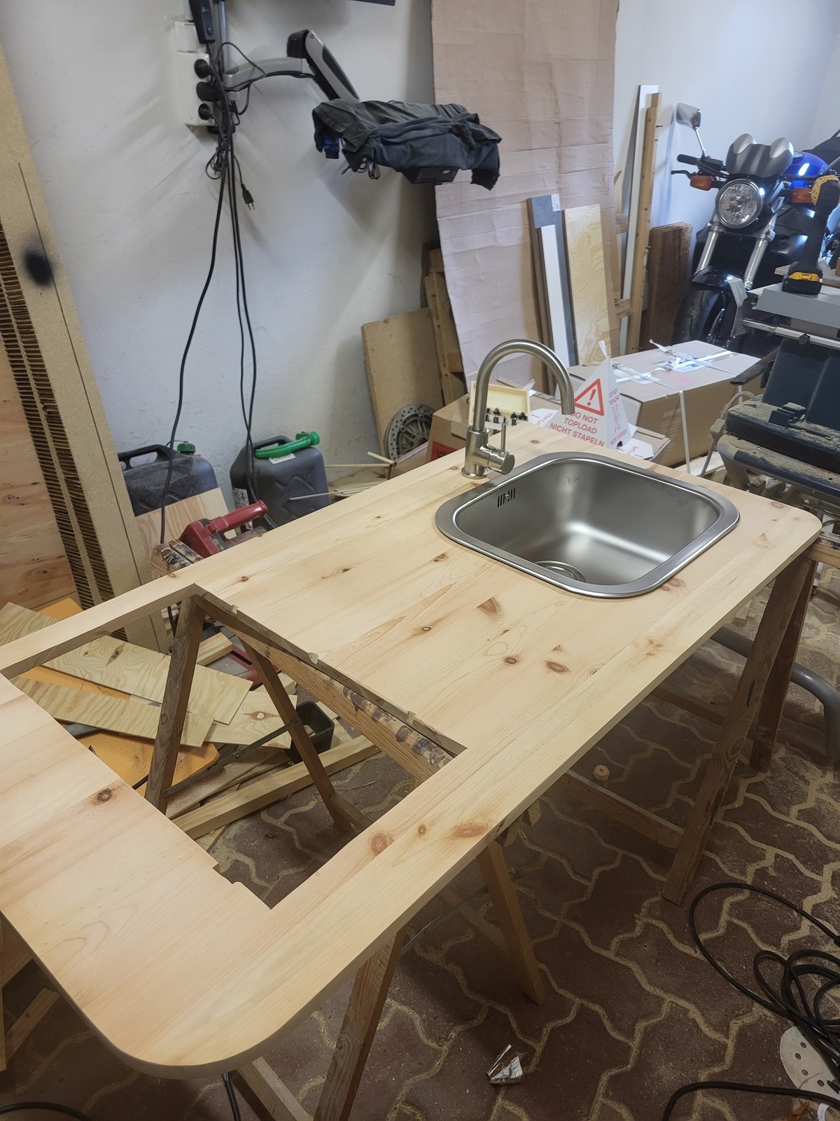 Jetzt sind die Möbelplatten für Waschtisch und Küchenzeile an der Reihe...
