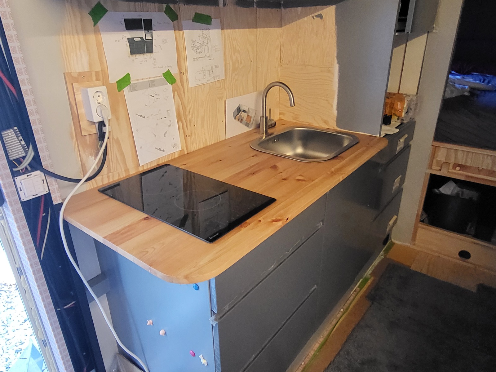 vorletzte Woche noch schnell vor dem Urlaub eingesetzt... Leider sind die Halter der Spüle nicht so gut und das Teil muss noch ein wenig optimiert werden. Aber das Kochfeld funzt...