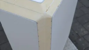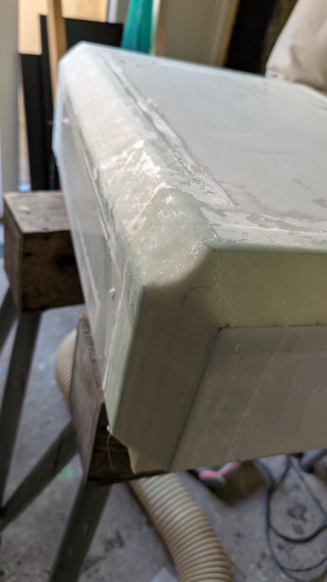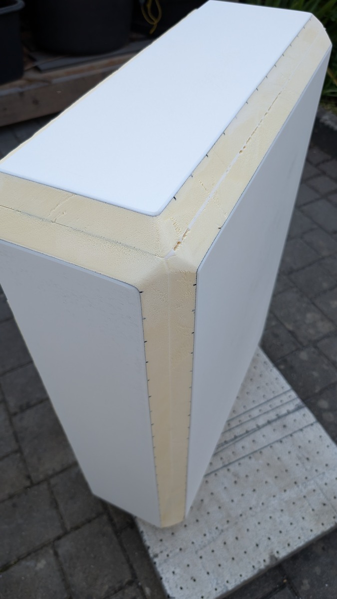 Diese Box aus 40mm Material ist auf Gehrung geschnitte und an Aussenkanten gefast. Sie wird auch als Duschwanne fungieren, so der Plan.