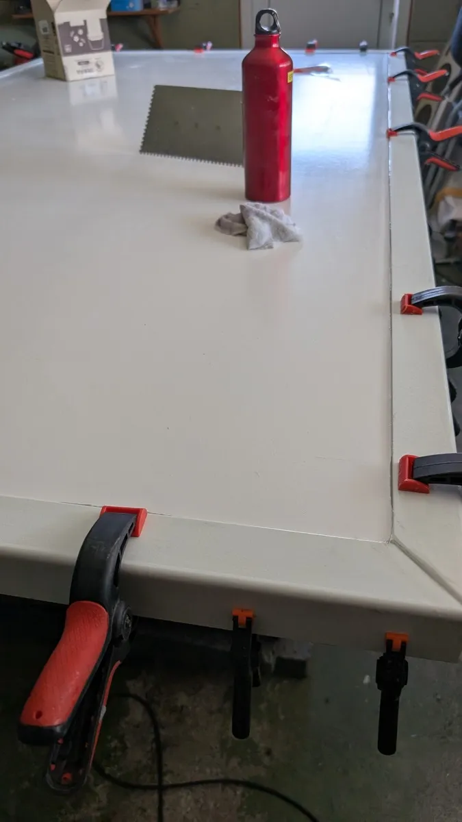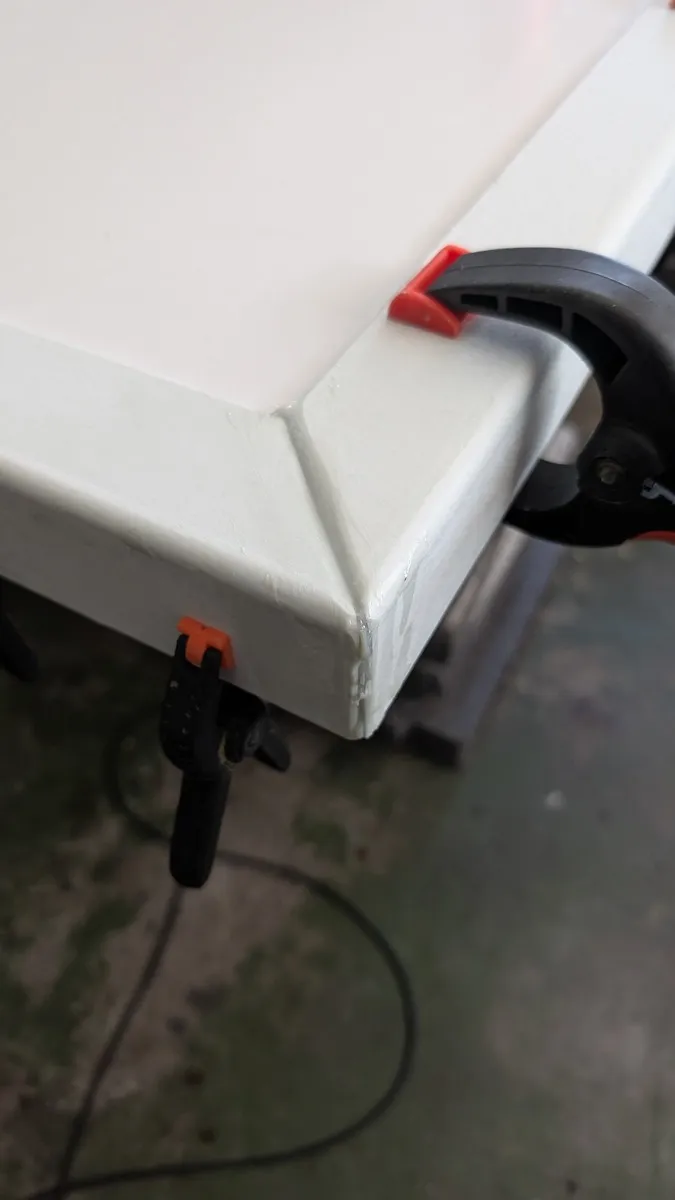 Die Masse sind 2300x1300. Von unten gesehen laminiere ich am Rand eine 20x20 ULeiste rundherum ein, auf der Oberseite dann ein Umlaufender 50x50mm Winkel der 6mm übersteht. Am Dach des Anhängers kommt dann ein umlaufendes 20x20mm Winkelprofil das in das UProfil eingreift. in die ULeiste kommt dann ein Moosgummiband als Dichtung. Mit 6 Schrauben möchte ich das Dach dann von unten/innen befestigen.