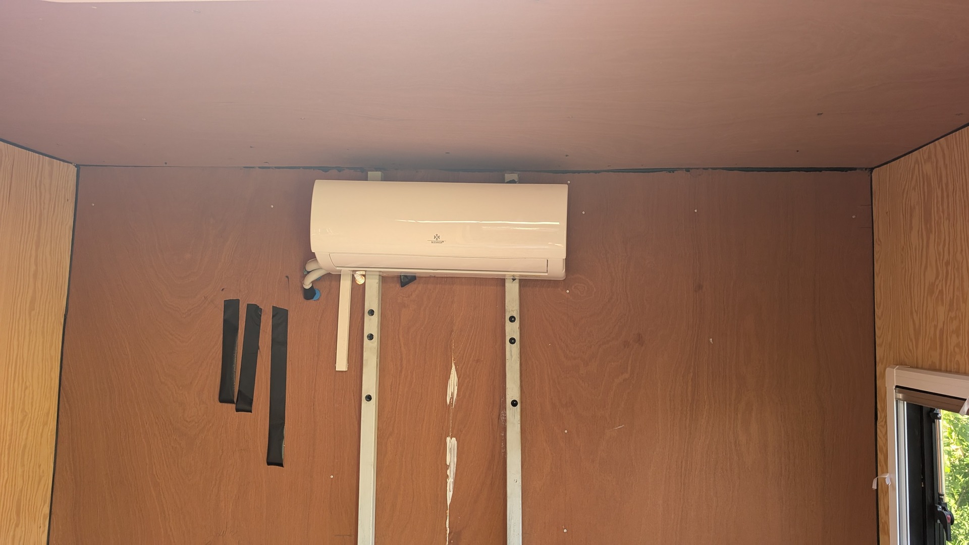 Bei der Klimaanlage handelt es sich um eine handelsübliche Splittanlage von Amazon. Da ich schon mehrere solcher Anlagen installiert habe und über das nötige Werkzeug bzw. auch die nötigen Vakuumpumpe verfüge, war das ein Kinderspiel.![]()