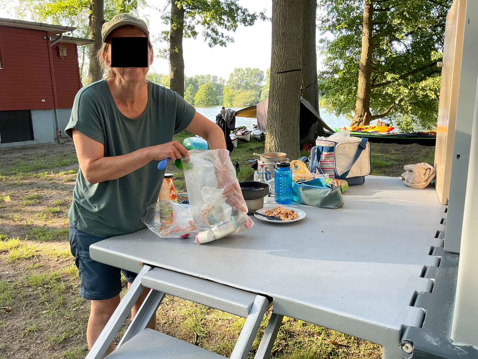 Diesmal gab es keine Pannen, ich musste meine Frau jedoch überreden, das eigene WC und die eigene Dusche zu benutzen und nicht die Einrichtungen im Vereinsgebäude. Draussen kochen haben wir auch probiert. Ich reiche alles von drinnen zu, meine Frau steht an dem Aussentresen. Eine Verbesserung wäre noch, den zusätzlichen Tritt zum Aufladen der Boote ausserhalb zu lagern, demnächst messe ich mal eine Teleskopleiter aus.