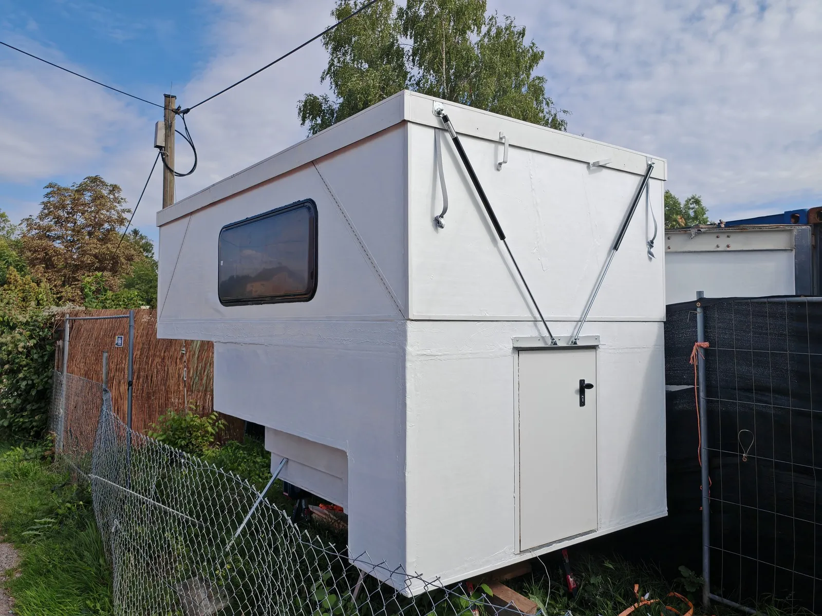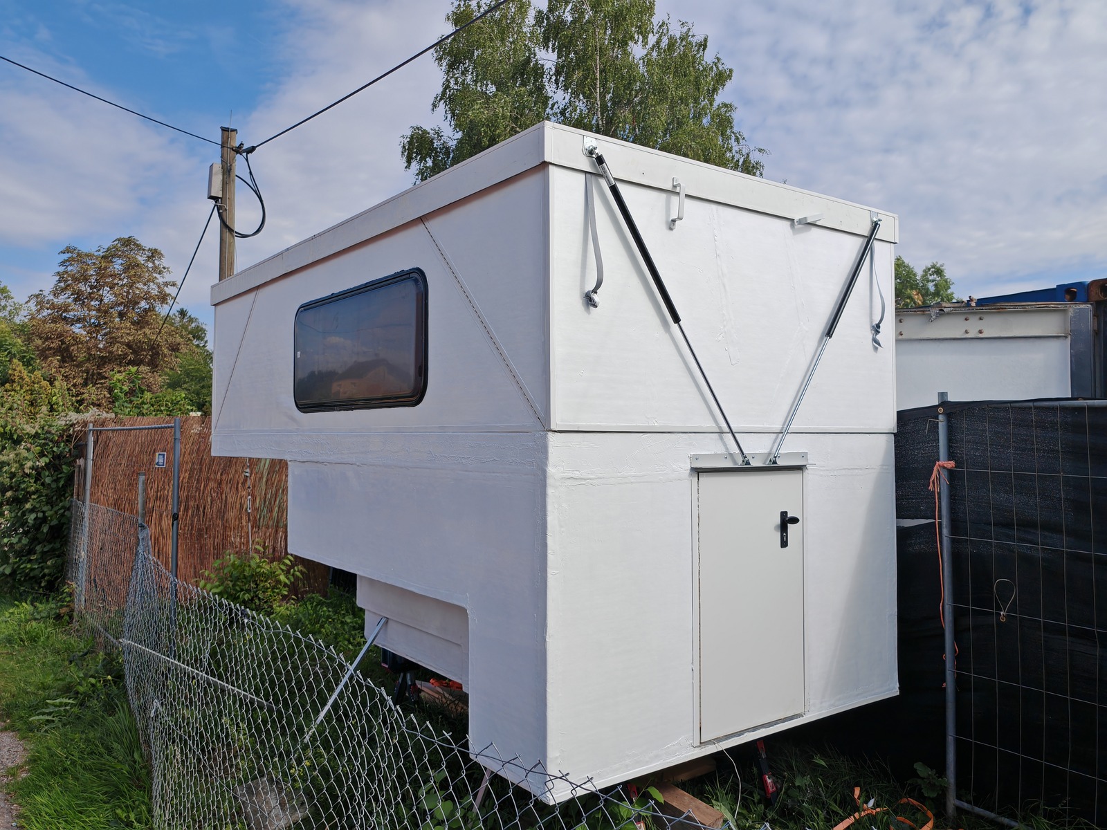Jetzt fehlen noch Stützen und Dachabdichtung wenn es ein geklappt ist. Dann kann, wenn der Pickup wieder einsatzbereit ist, eine Runde Probegefahren werden. Soweit wollte ich eigentlich schon im Frühjahr sein ![]()