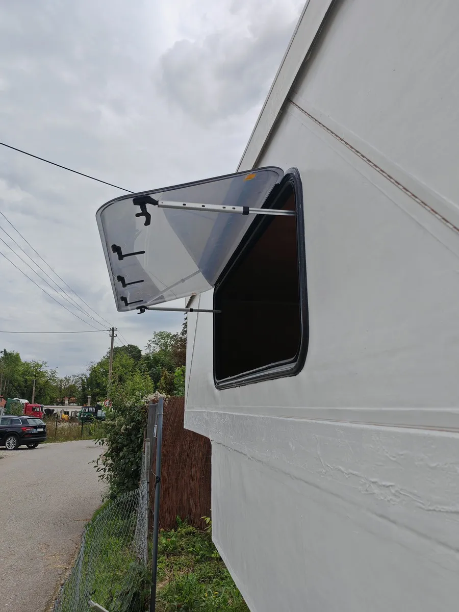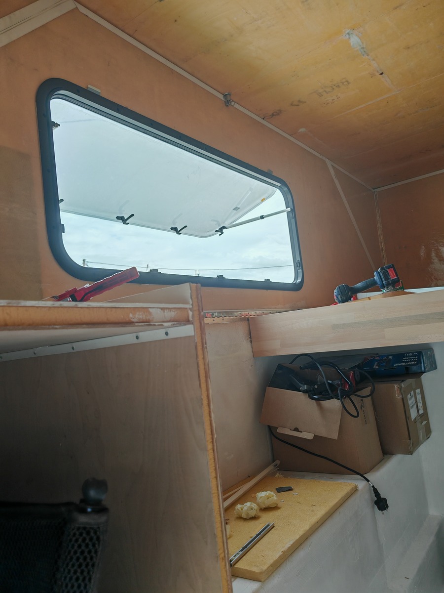 Jetzt habe ich 145*55 er Fenster drin. Von eBay, scheinen recht stabil. Mal schauen wie die dann in der Praxis sind. Soweit funktioniert alles gut. Nur aufklappen der Wände wird deutlich schwerer. Sind ja ca. 20 Kg insgesamt mehr an Gewicht.