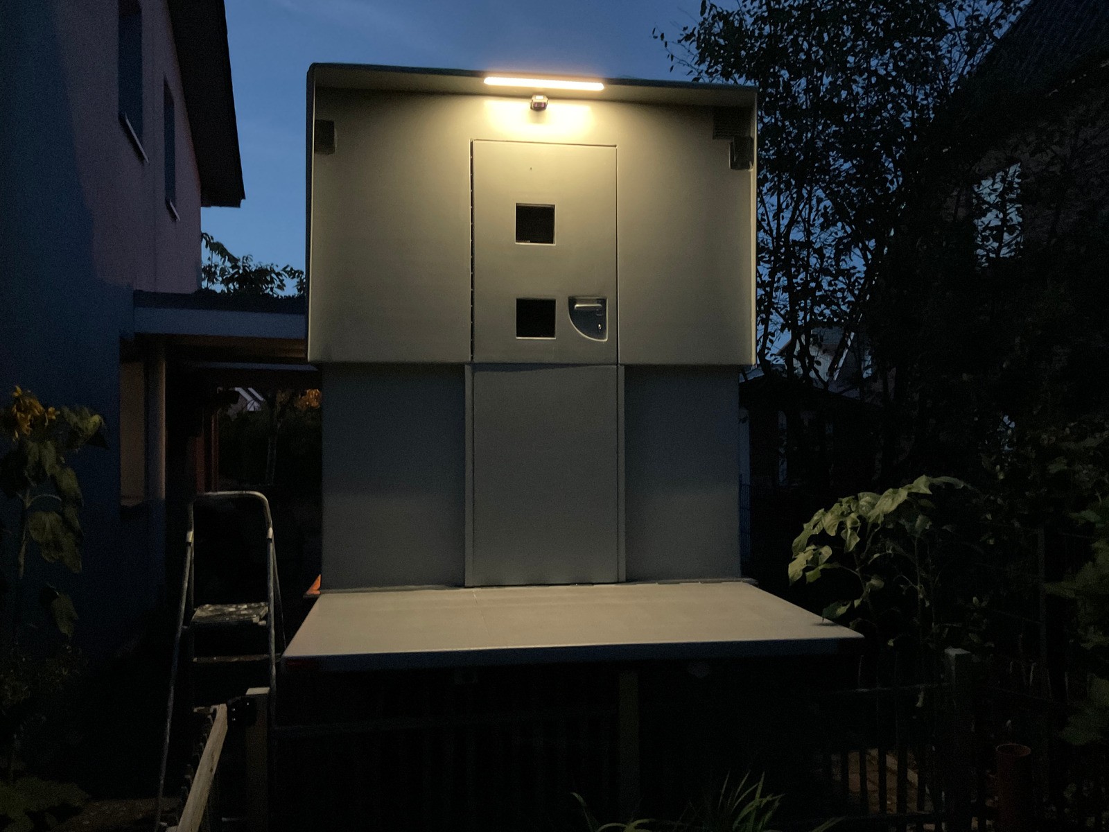 Weil sich die dunkle Jahreszeit ankündigt, kann man seit heute von Innen und von der Aussenklappe mit den Bedienelementen das Terrassenlicht schalten.