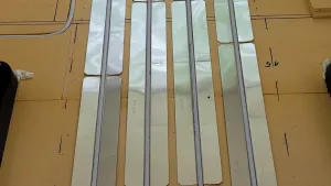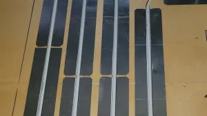 Die Wärmeleitbleche und auch das 16 mm Aluverbundrohr paßten optimal ind die gezogenen Nuten und rasteten förmlich ein. Sinnvoll ist VORHER die Unebenheiten und Stoßkanten mit einem Schleifbrett zu glätten.