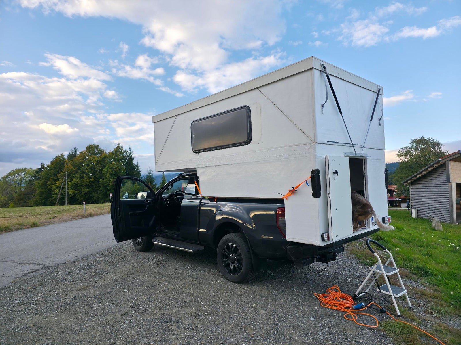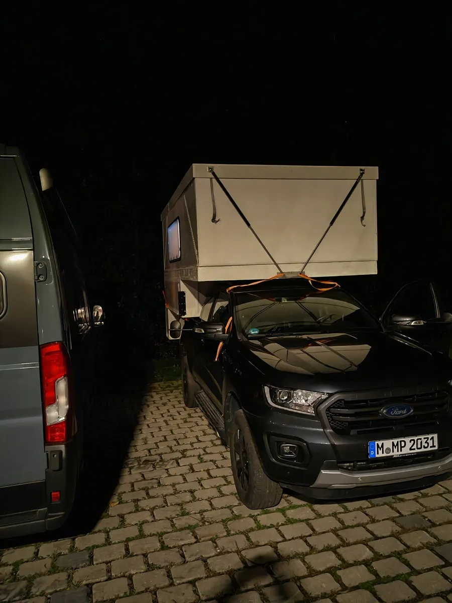Ab 5 Ur Morgens war.der Durchgangsverkehr doch recht viel. Und hier zeigt sich das erste Mal der Nachteil: 2 cm XPS und nicht perfekte Dämmung der Ritzen gibt nicht wirklich Schutz gegen den Straßenlärm. Und ungeheizt ist die Bayrische Nacht auch mit zwei Decken Recht kalt am Kopf.