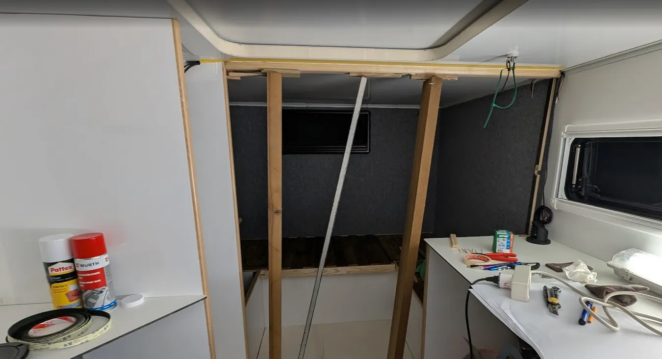 Einkleben der Traverse um den Durchhang bei Schlafdachbenutzung zu verringern, auch darin sind Kabelkanäle eingefräst