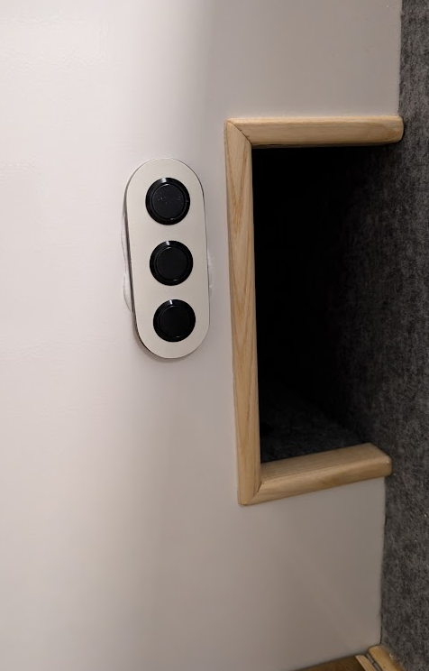 die Tasterblöcke jeweils neben den "Nachtkästchen", Links unten noch ein Schalter um die Autoterm in den 2h Vollgasmodus zu schalten vom Bett aus