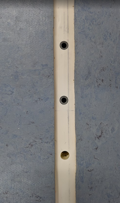 Einkleben der Bodenairlineschiene mit Abstandstücken aus Fieberglasrohr aus dem Modellbau