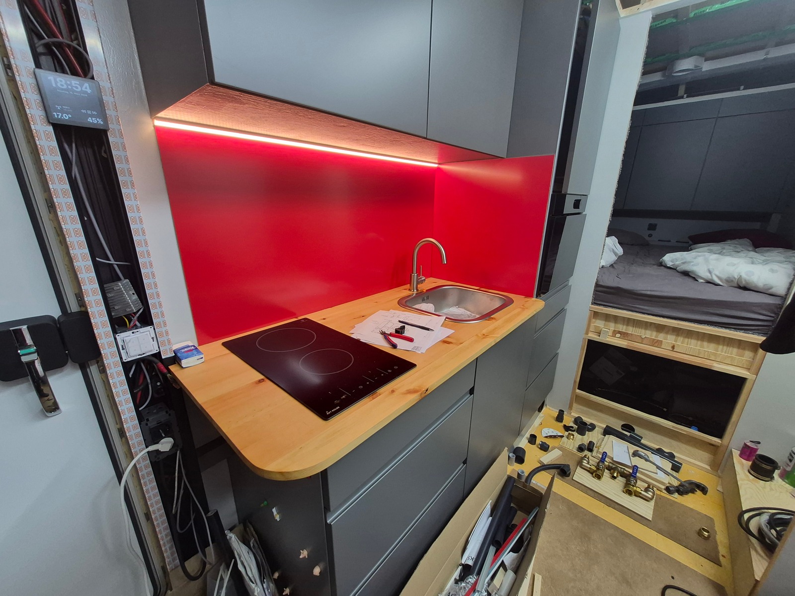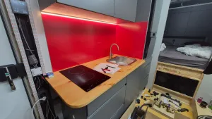 Wie im Titel beschrieben hat die Küche endlich eine Rückwand bekommen.Nachdem der extra bestellte Egger-Schichtstoff sich nicht begradigen ließ, kam nun Alu-Dibond in 3mm zum Einsatz:Nun fehlen nur noch die Sikikonfugen...