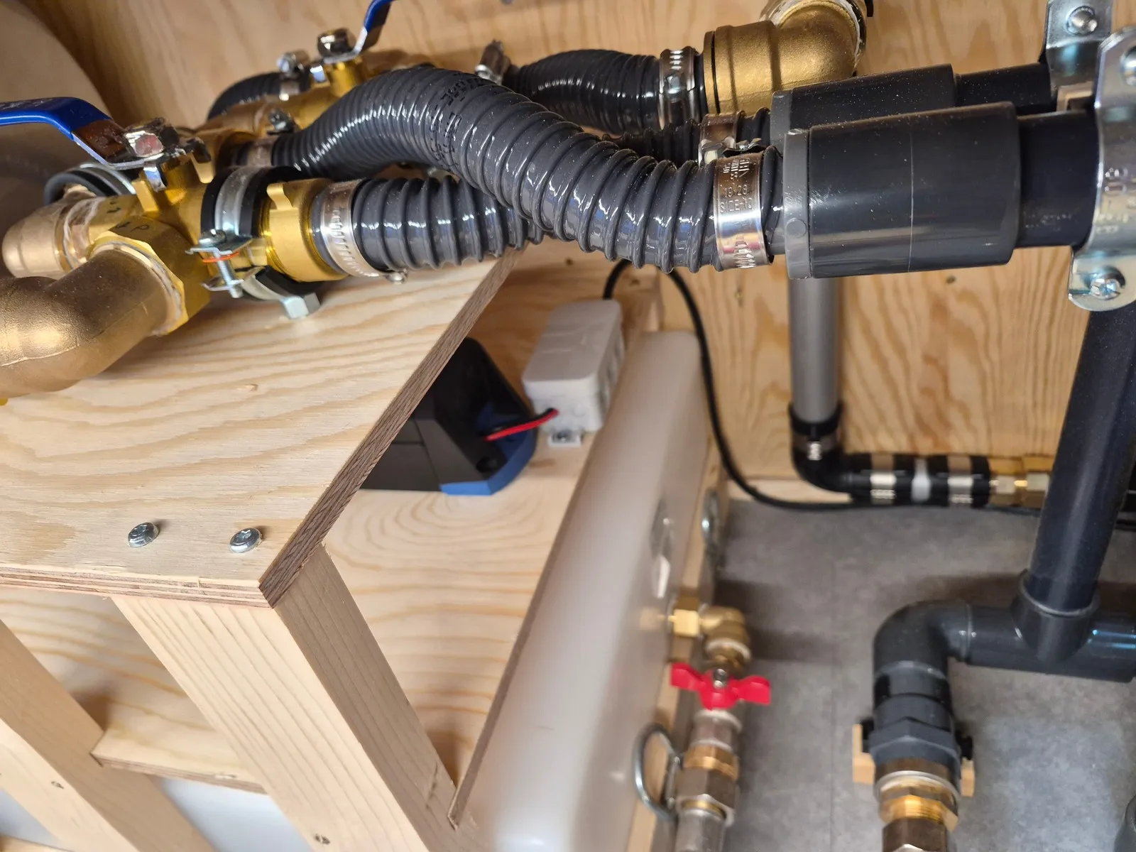 Heute die Böden für Pumpe und Hahnkombi eingepasst, sowie die anzubindenden Rohre ein wenig weitergebaut.