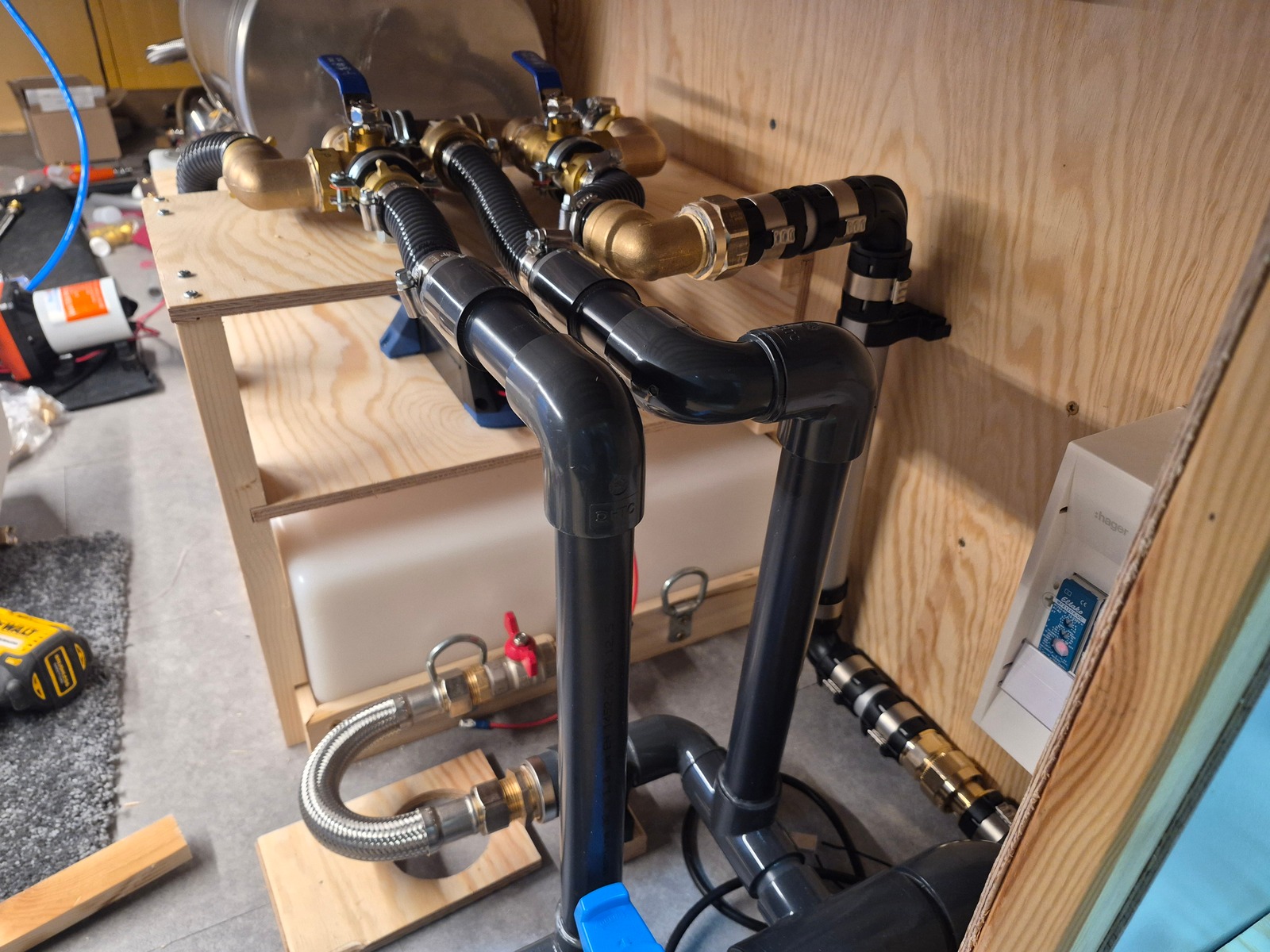 Heute die Pumpe und die Hahnkombination montiert und angeschlossen. Die letzten PVC-Rohre sind nun auch geklebt...