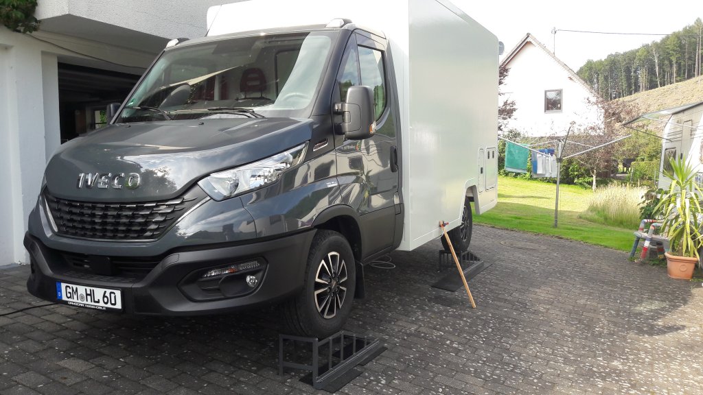 Weil die Stoßstange etwas scheckig war, wollte Iveco die tauschen auf Garantie. Na gut, so wild wars nicht, aber dann ist alles wieder ordentlich.
