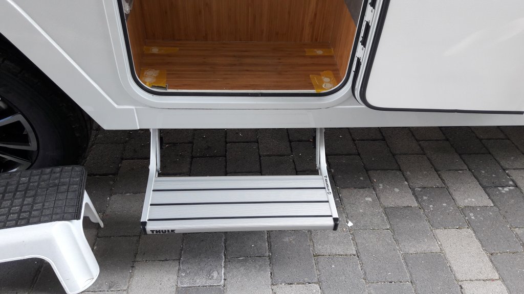 Und um das schöne Wetter zu nutzen, noch die elektrische Trittstufe montiert und die Schraublöcher wieder mit Kleber verspachtelt: