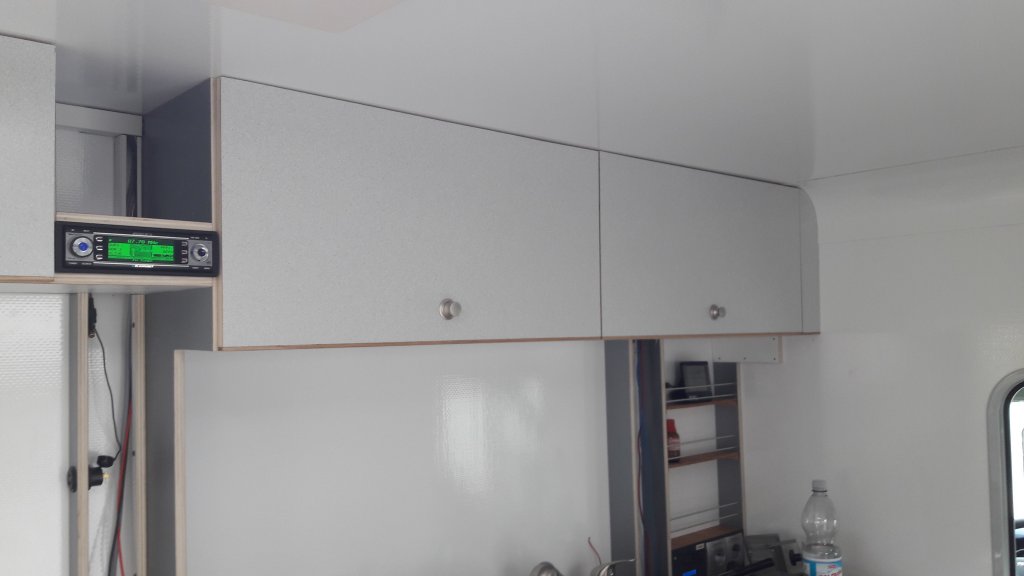 Das Fach über dem radio bleibt erst mal offen, für Kleinkram. Wann das nicht überzeugt, kann ich ja immer noch ein Kläppchen einbauen.