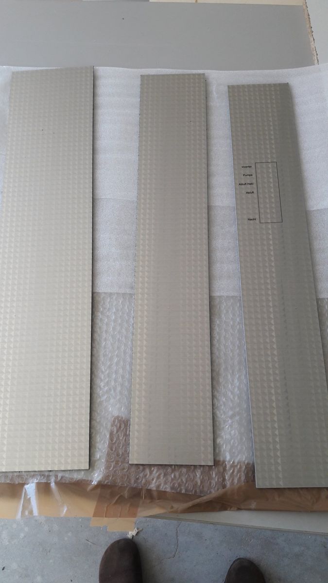 Heute wurde einiges verkabelt, Nachmittags sind dann die bestellten Dibond Panels gekommen, bedruckt mit dem gleichen Muster wie die Badtüre: