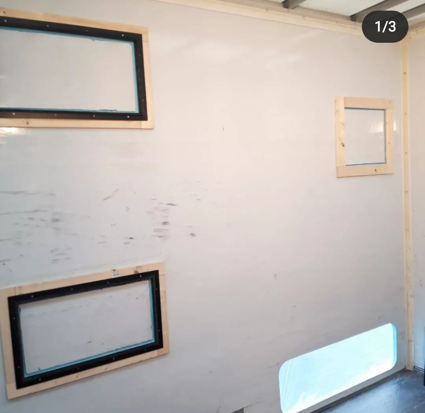 Die Febsterrahmen sind fertig und zum Teil bereits eingeklebt. Der GFK ist innen vorgefräst.