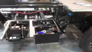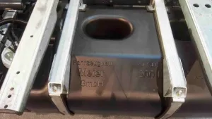 An diesem Fahrgestell seht ihr auch den Einfüllstutzen des Tanks an der B-Säule