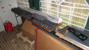Ja, die Fenster sind Carbest, die Wände bestehen aus 20mm PVC-Sandwich und aussen 5mm Aludibond aufgeklebt, sehr steif geworden. Das Ganze in den Aussenrahmen mit Gummipuffern eingeschoben und dann da rein den Innenrahmen, an dem alle Einbauten befestigt sind. Die Rahmen sind jeweils mit der Pritsche verschraubt, an insgesamt 30 Stelle. So ist der Koffer komplett entlastet, und wir sind mit den Einbauten total flexibel. Ist halt nur vom Design her nicht "urbayerisch-gemütluch", sondern festivalmässiger Look.Dafür aber beliebig belastbar.Und die Eckprofile sind die, die wir schon bei allen anderen Kabinen verwendet haben, nämlich die von Moser Anhängerselbstbau, nur etwas preiswerter gekauft bei MeJo Josten Düsseldorf.