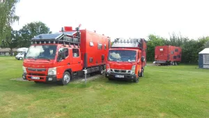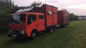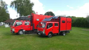 Nun ist er fertig - unser "Kleiner" .... steht stolz neben dem großen 7,5 Tonner bei seiner Jungfernfahrt (wir sind gerade unterwegs damit). Im Hintergrund abgekoppelt der Shelter, der jetzt noch farblich angepasst werden könnte.