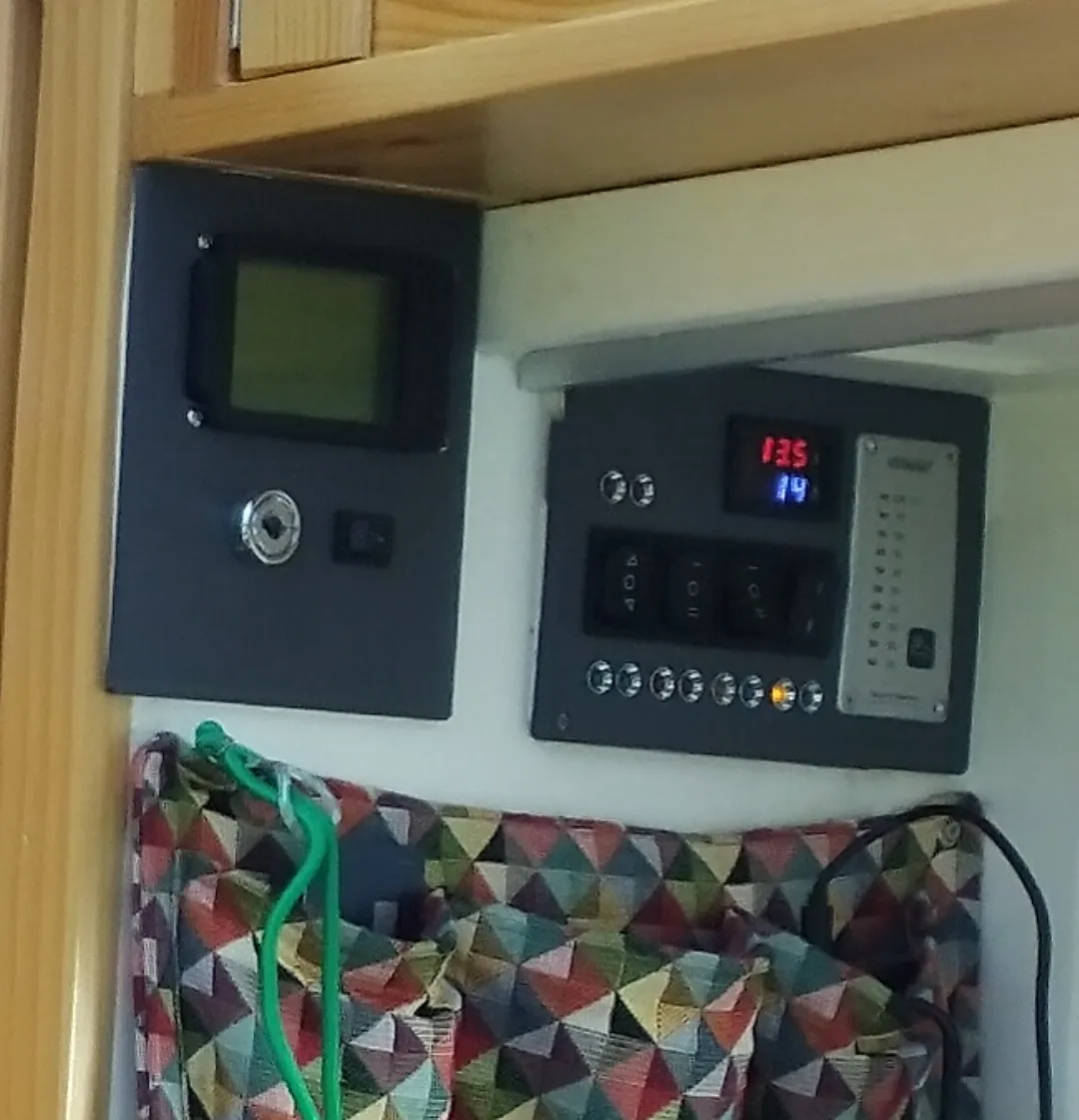 Die blöden Votronic Panels mit den LEDs wollte ich aber nicht, deshalb der Philippi BTM. Andere Spannungsanzeigen würden damit auch gehen.