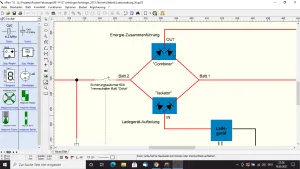 Ich habe mal nur den Ausschnitt gepostet, der die Zusammenschaltung zeigt. Diese beiden Diodenblöcke "Combiner" und "Isolator" gibt´s von Victron als Schottky-Module und haben kaum nennenswerte Verluste. Man kann die ladeseitige Zusammenschaltung aber auch mit getrennten Solarladereglern für jede Batterie bewerkstelligen, an die alle Einspeisungen (Solar, Wind, ungeregeltes Landstromnetzteil, Lima-Booster) solarseitig angeschlossen werden. Dann sind auch alle Batterien einzeln und getrennt.