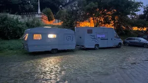 Der Anhänger ist allein für die "Kids" (zwischen 20 und 24 Jahren) gemacht. Die haben tatsächlich noch Bock mit uns mal einfach loszufahren.