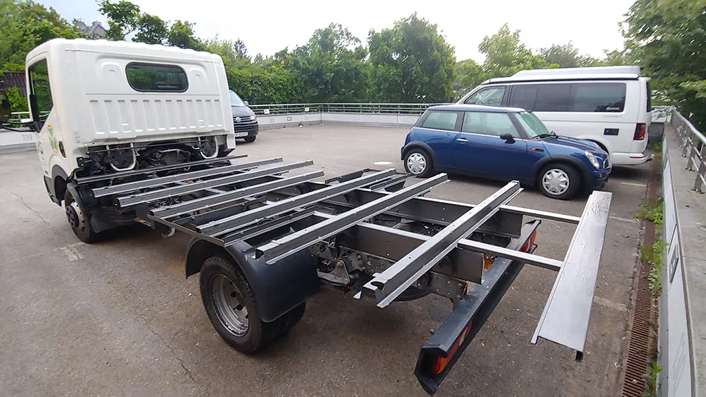 Ich würde mal den Test machen und einfach mit einem Rad auf einen hohen Bordstein fahren um zu sehen, wie sehr sich der Rahmen ohne Kabine verwindet.