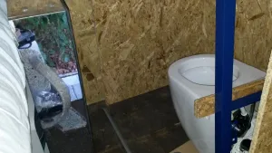 So Toilette ist zur Anprobe drinn. Stellt sich die Frage ob ich die Trennwand weiter nach vorne setze, wie schmal darf eine Sitzbank werden um noch bequem zu sein? Um Moment wären es 93cm das erscheint mir für 2 zu wenig und für einen zu Viel, 10cm mehr im Bad wären aber nicht schlecht...