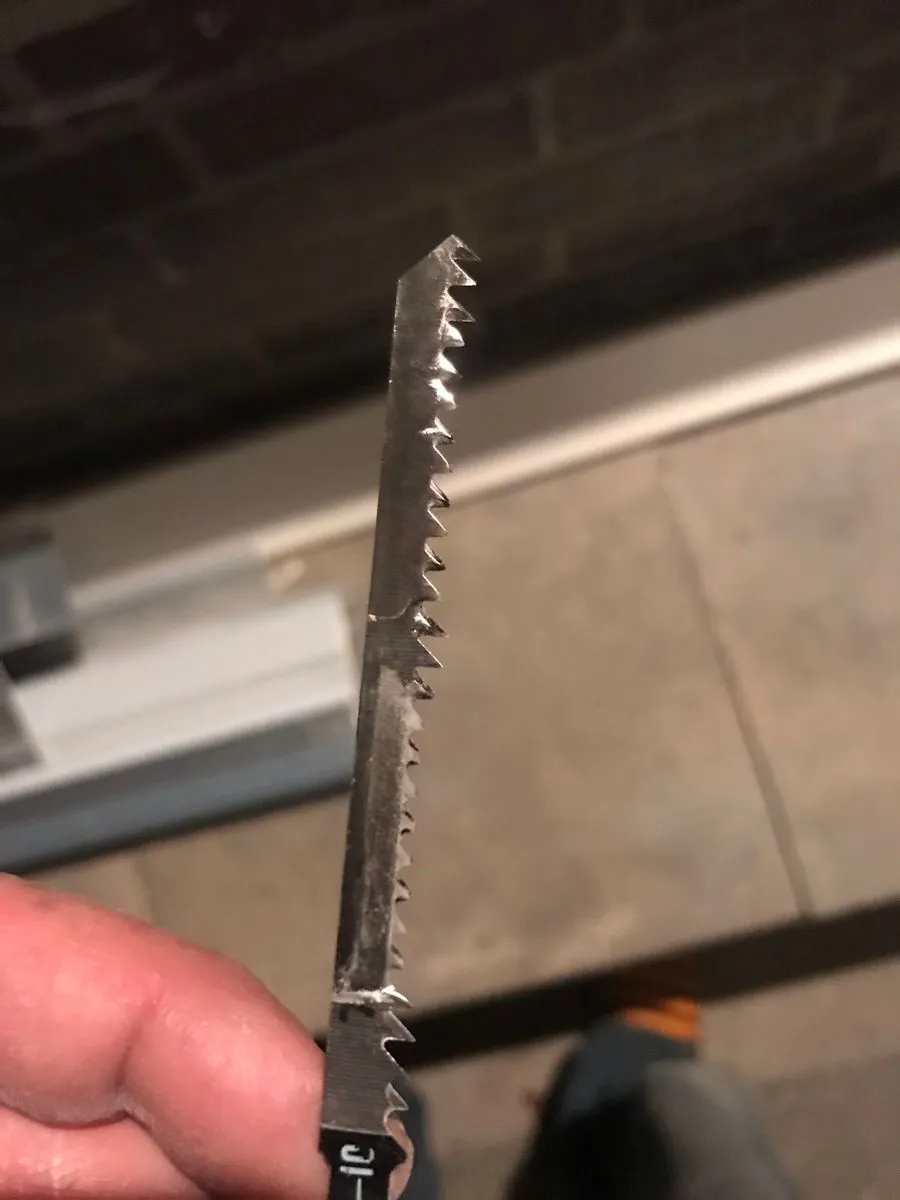 Ein Kunststoff-Stichsägeblatt vom Lidl pro Fenster 8) Und die Ecken vorher mit der Lochsäge auf den richtigen Radius ausschneiden.
