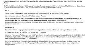 Er bietet aber die Möglichkeit, neben dem maximalen Landstrom von 32 A noch 9 A über den Wechselrichter quasi dazu zu mischen. Das ergibt dann eine Maximale Ausgangsleistung von 41 A, die natürlich abzusichern ist.