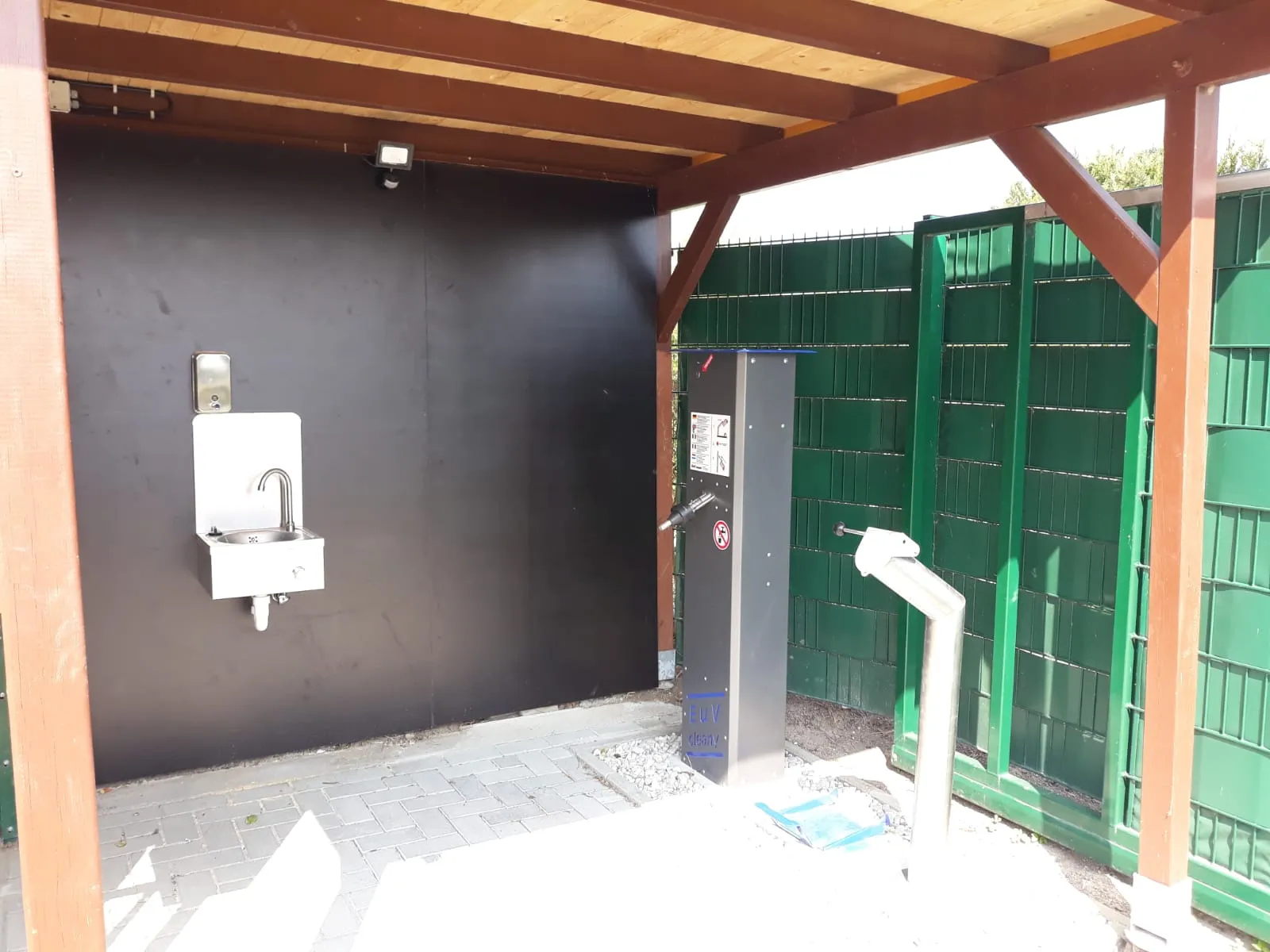 Ein Daumen hoch :thumbup: für die überfahrbare Entsorgungsfläche in Form eines Betontrichters oder einer Betonrinne. Letzteres ist vor allem dann besser, wenn die Fahrtrichtung irgendwie vorgegeben ist, denn der Grauwasserablauf ist bei manchen Autos links, bei anderen rechts.