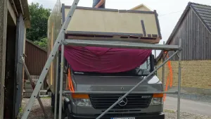 Dacht ich mir schon, dass hinter der OSB platte irgend ein geheimnis steckt ;) 1250kg für die kabine ist zwar schon knackig, mit 60mm GFK wären wohl um die 800kg möglich gewesen. Aber bei 7,5t als basis ist das eigentlich wirklich wurscht. Dafür hast du jetzt eine isolation, mit der du auch in sibiren keine kalten zehen bekommst.