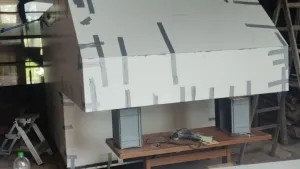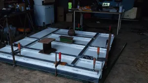 Bodenplatte: 1,5mm GFK, 2,5mm MultiTec PP-Faserplatte, 40mm hochdruckfester Polystyrolschaum, 1,5mm GFK